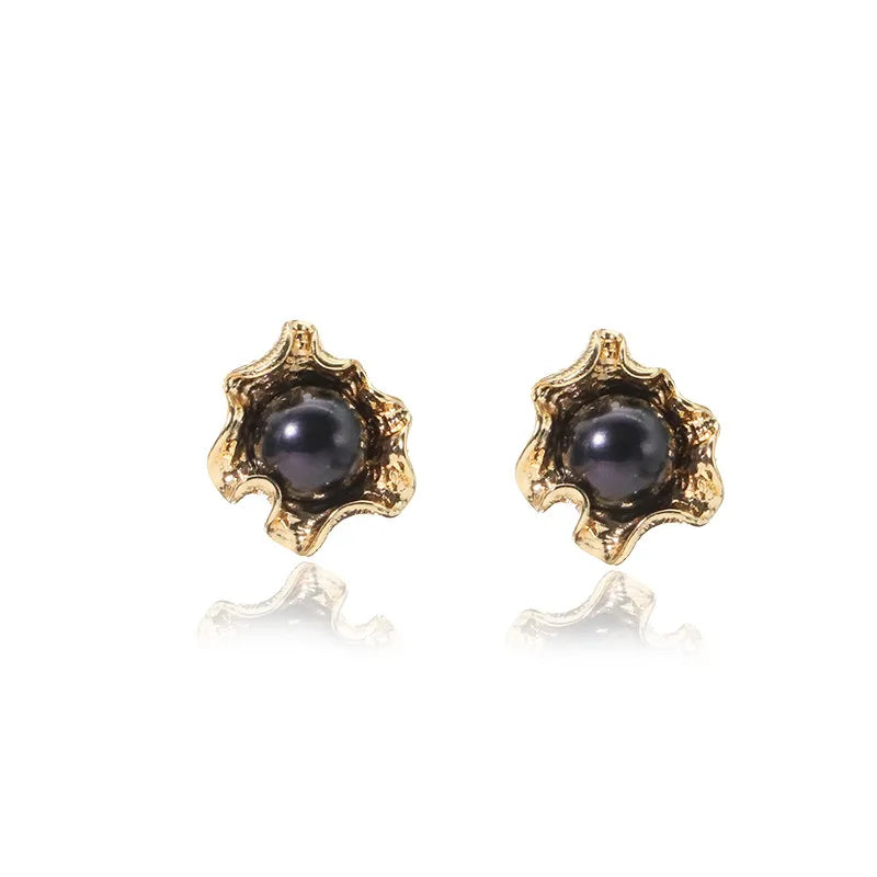 1 Pair 18K Gold Plated Copper 925 Sterling Silver Freshwater Pearl Geometric Solid Color Ear Studs