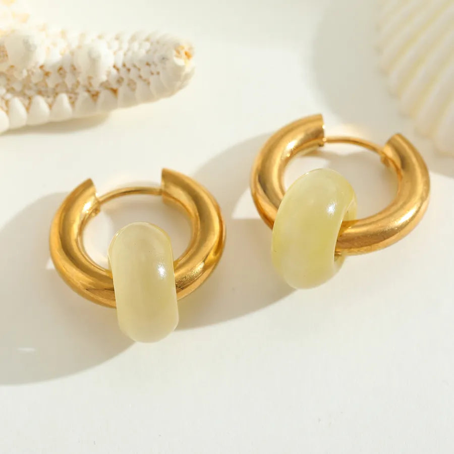 1 Pair Casual Elegant Cute Geometric Plating Inlay 304 Stainless Steel Cat's Eye Stone 18K Gold Plated Earrings
