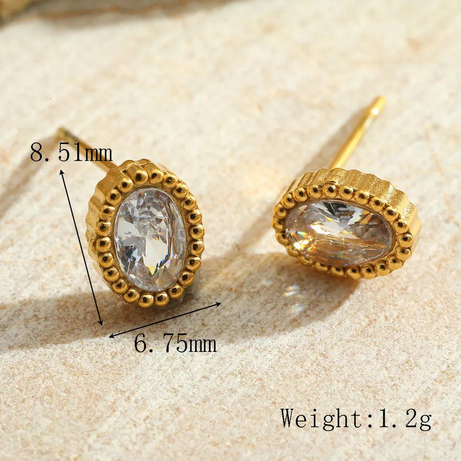 1 Pair Cute Retro Simple Style Geometric Plating Inlay 304 Stainless Steel Zircon 18K Gold Plated Ear Studs