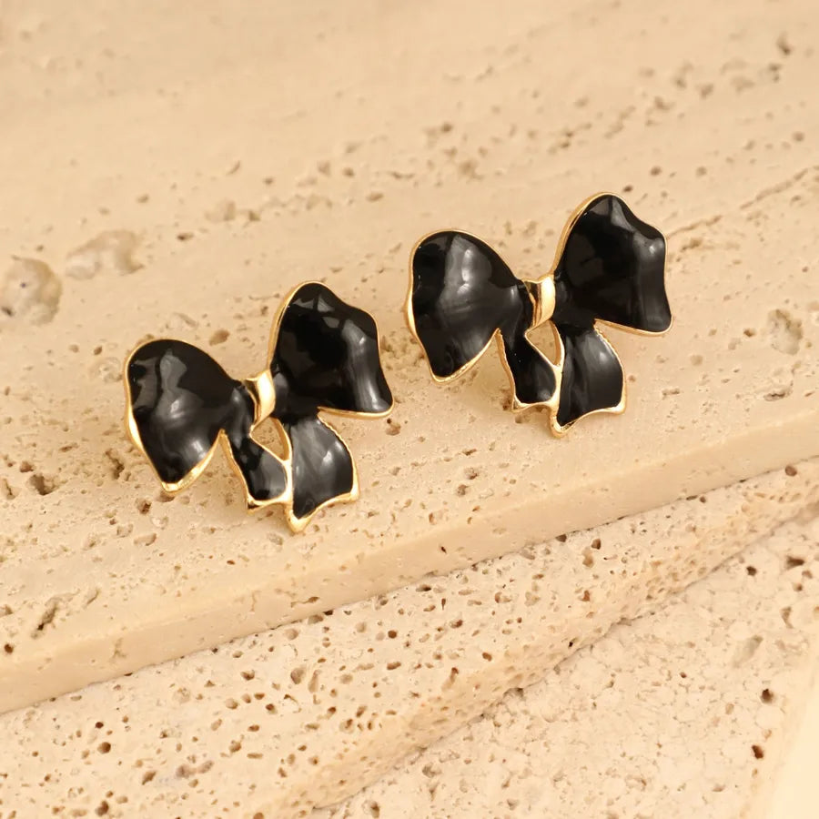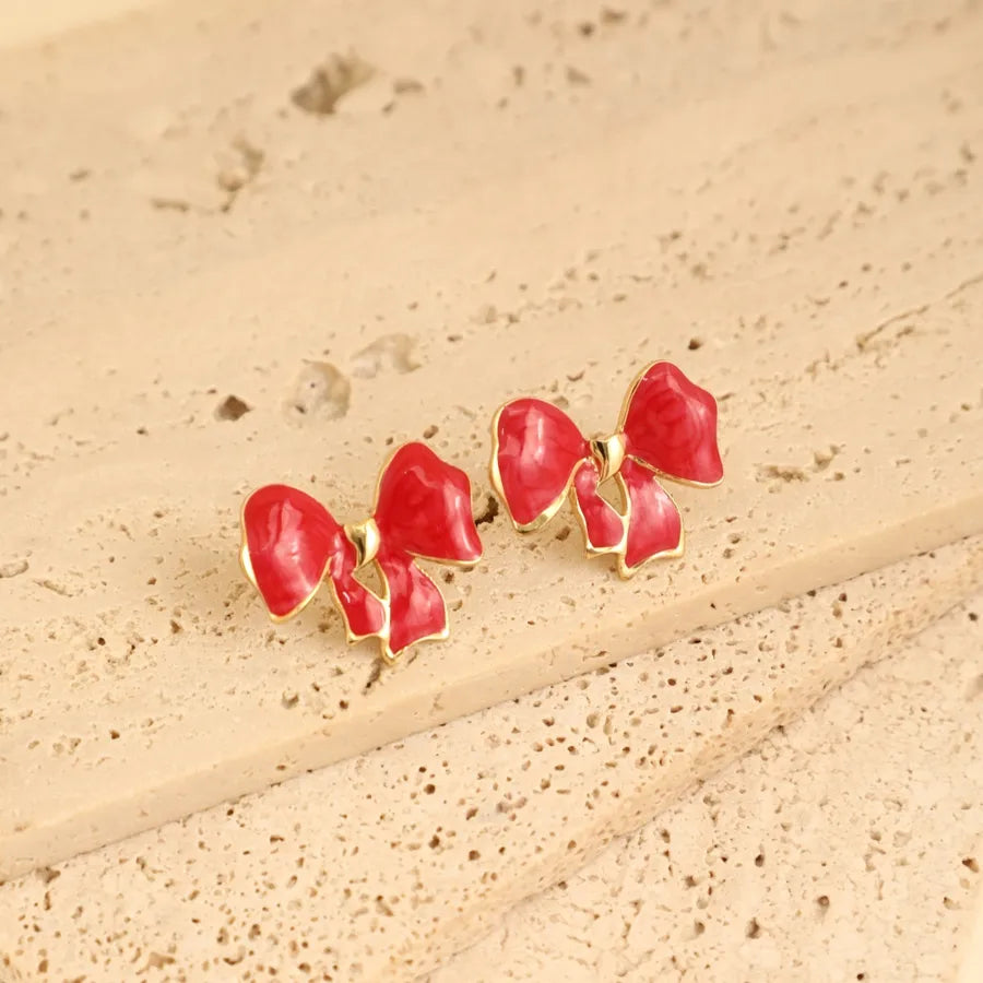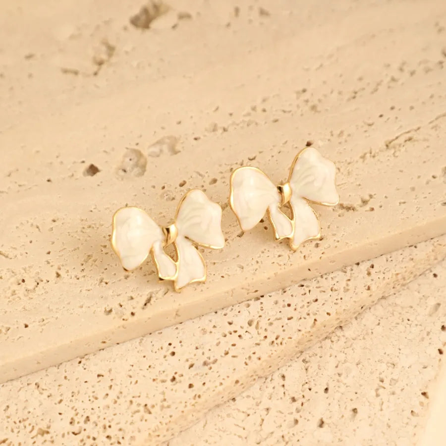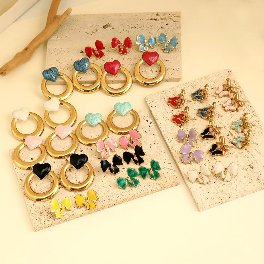 1 Pair Elegant French Style Sweet Heart Shape Bow Knot 304 Stainless Steel Ear Studs