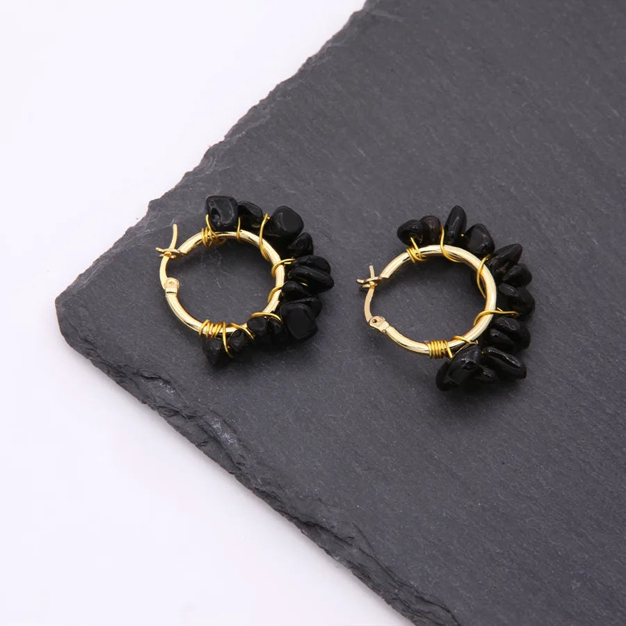 1 pair ethnic style bohemian tropical solid color handmade plating natural stone copper 18k gold plated hoop earrings