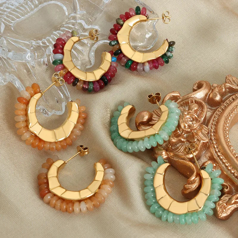 1 Pair IG Style Geometric Plating natural stone Titanium Steel Ear Studs
