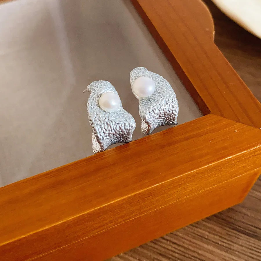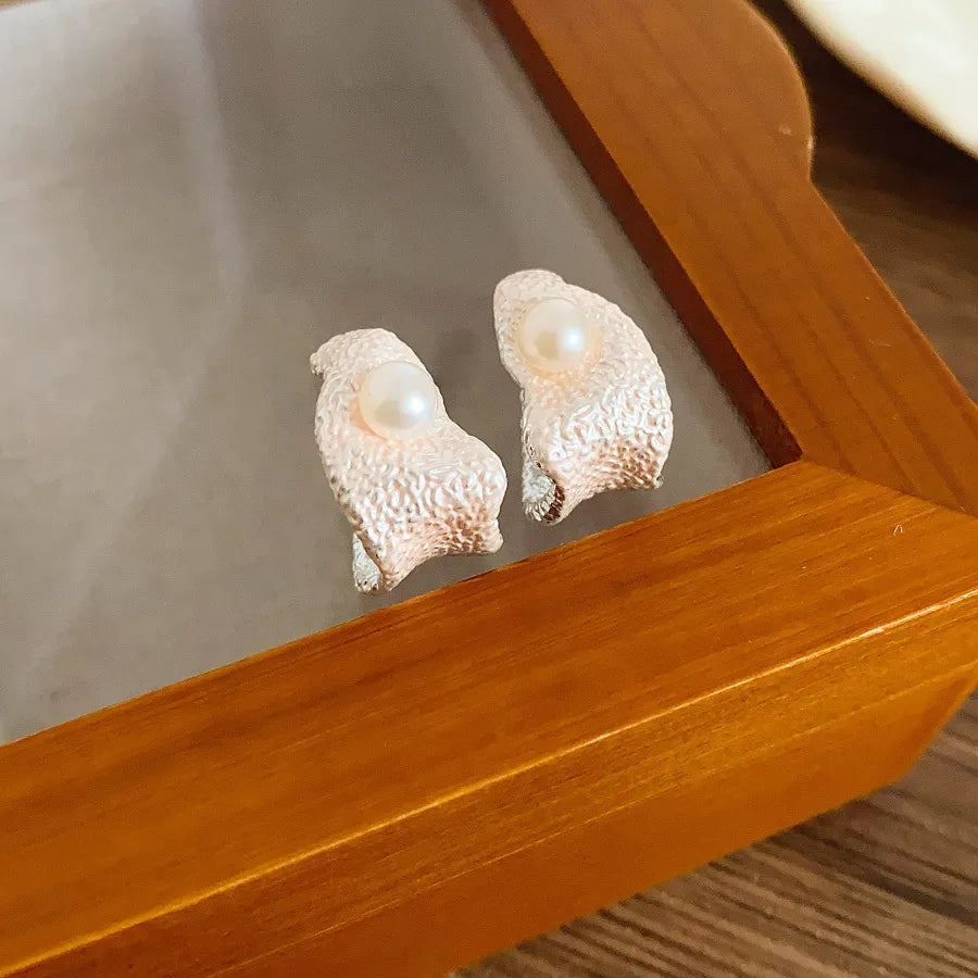 1 Pair Modern Style Geometric Plating Pleated Freshwater Pearl Copper Ear Studs