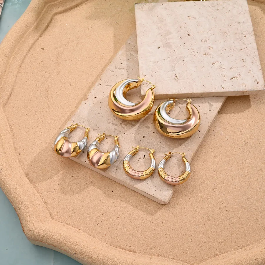 1 Pair/Package Casual Simple Style U Shape Spiral Stripe Handmade Polishing Mixed Metal 304 Stainless Steel Earrings