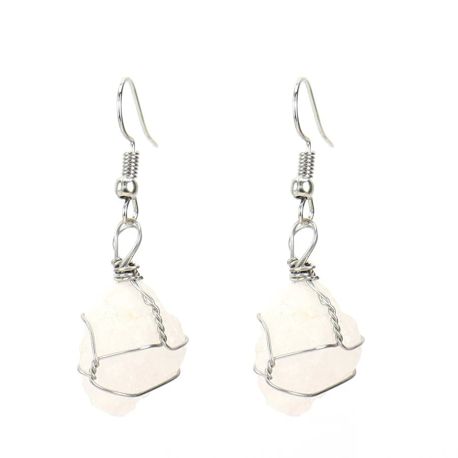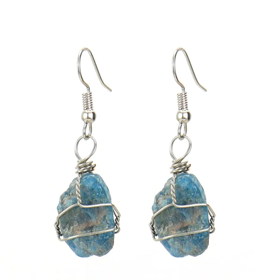 1 pair retro geometric natural stone plating metal drop earrings