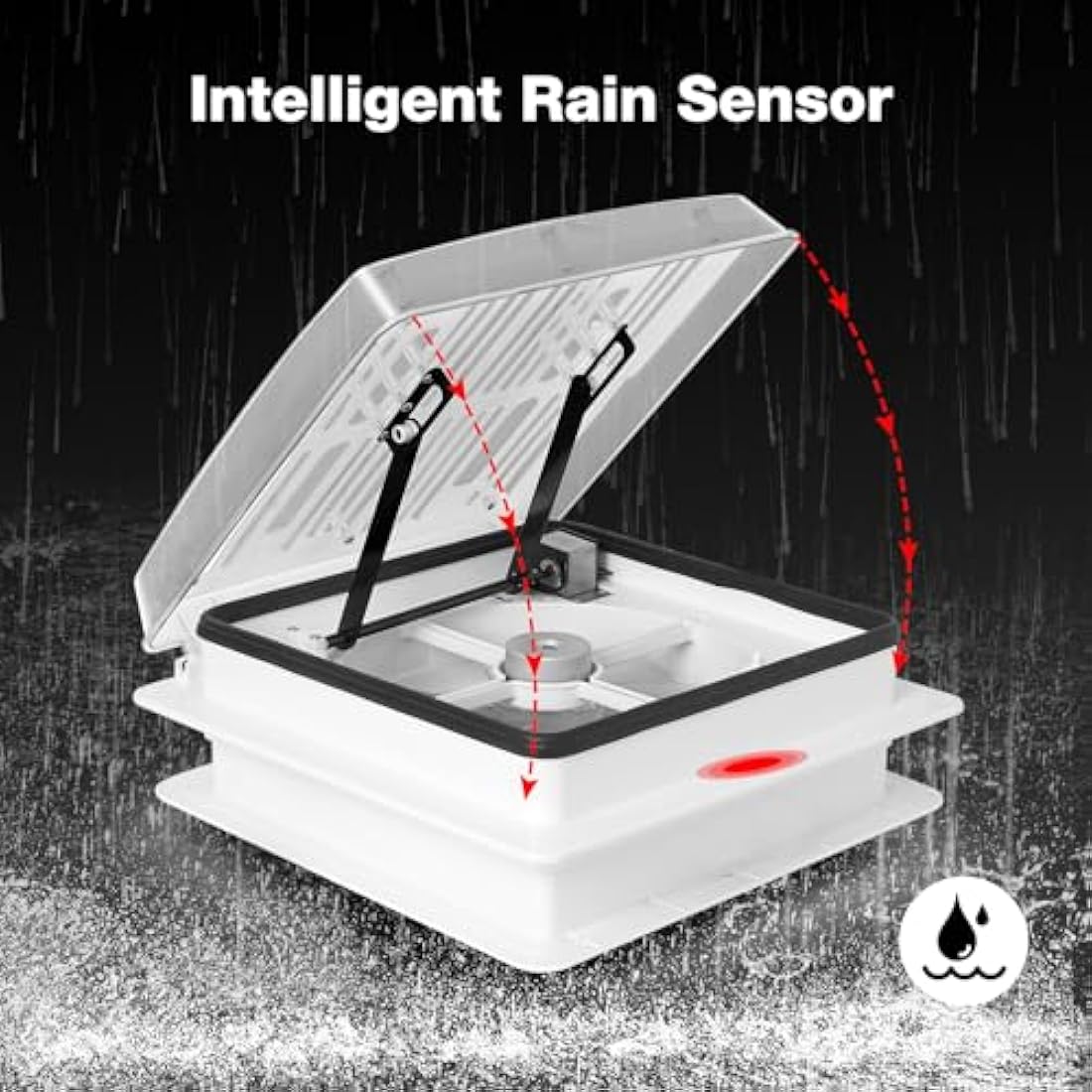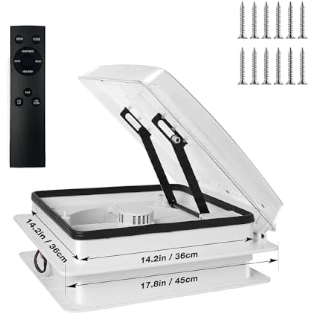[Universal Size and Lifetime After-sales]: It fits standard roof vent 14 x 14 inch, the suggested opening size is 360*360mm, Recommended roof thickness: 37-85mm. High Powered with 12V DC voltage.