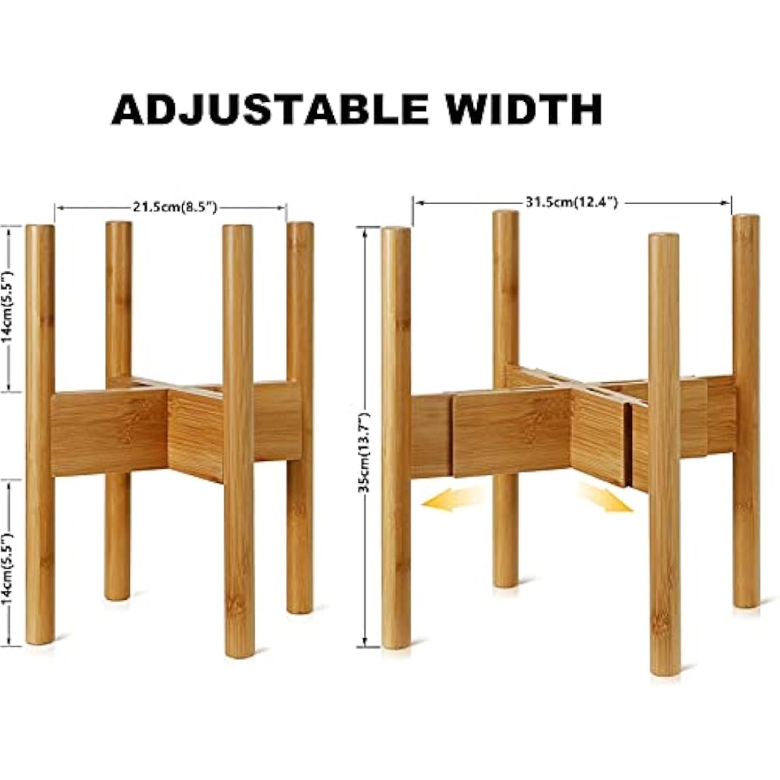 2-Pack Plant Stand, Mid-Century Modern Flower Pot Holder, Flower Pot Holder, Bamboo Adjustable Flower Pot Holder, Indoor Bamboo Modern Plant Holder, Fits Pot Size of 20-30 CM (Plant Pot NOT Included)