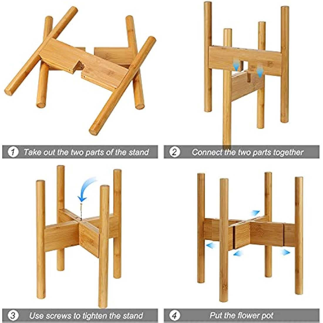 【2 MINUTE EASY ASSEMBLY】- You only need a screwdriver and then get a perfect plant stand for your beautiful flowers! Simply stand it up and insert the cross bar in the notch, then twist the screw into the hole of the wooden planter, and tighten it up.