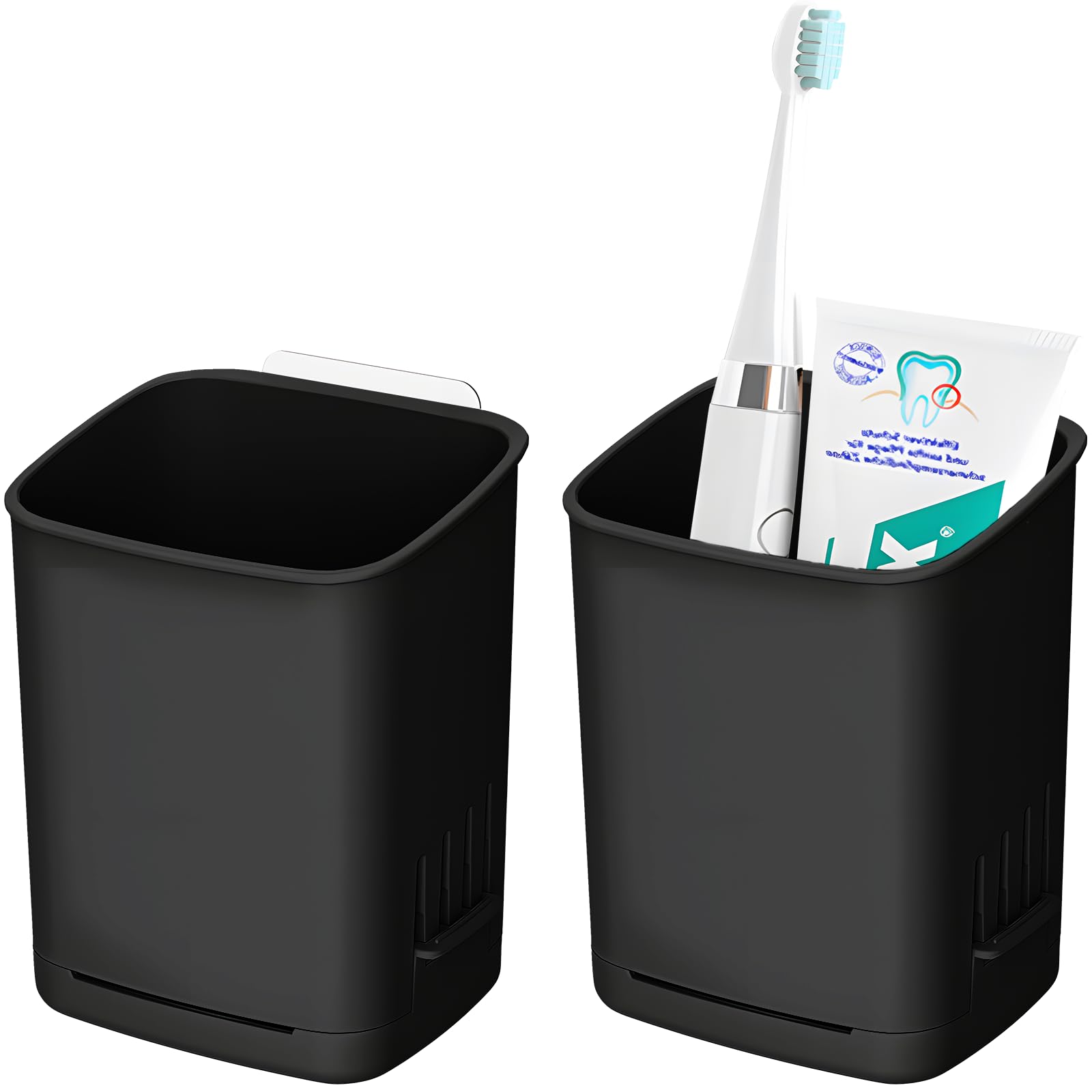 • 【High Quality Material】The toothbrush holder is made with reliable ABS material. It is high toughness and impact resistance. It can be reused and not easily broken. The black toothbrush holder maximum load-bearing of capacity 4.4 lb (2kg),can be used with confidence. kyPackage including:2 Toothbrush Holder,2 sticker.