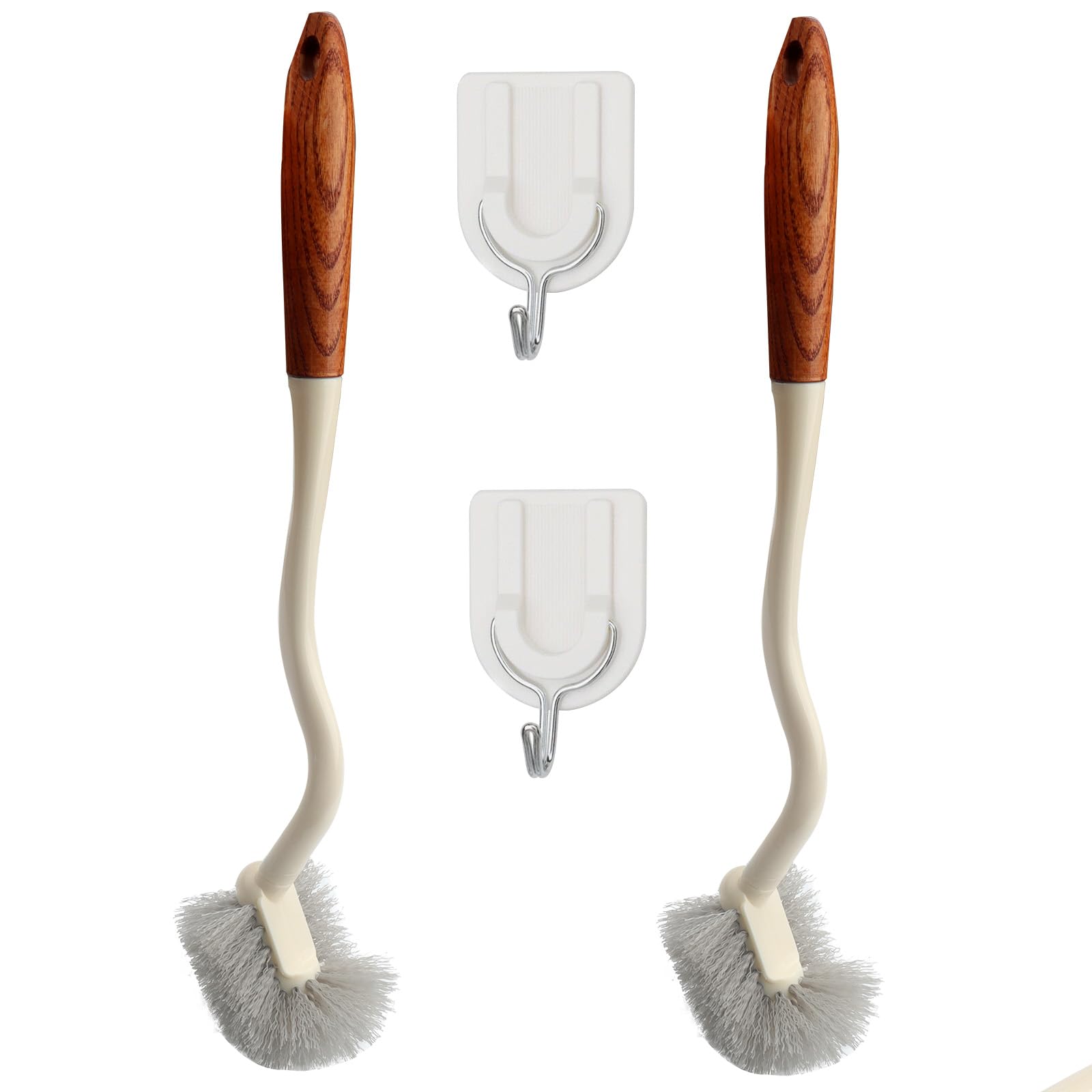 2pcs long handle toilet brush, wooden handle toilet brush, curved design angled cleaning brush, for deep cleaning