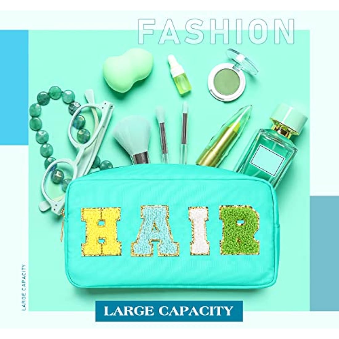 Attractive Appearance: nylon makeup bag is designed with chenille letter patches, which make the bag more attractive; The patches are sewn firmly on the bag so that you don't worry that they would drop