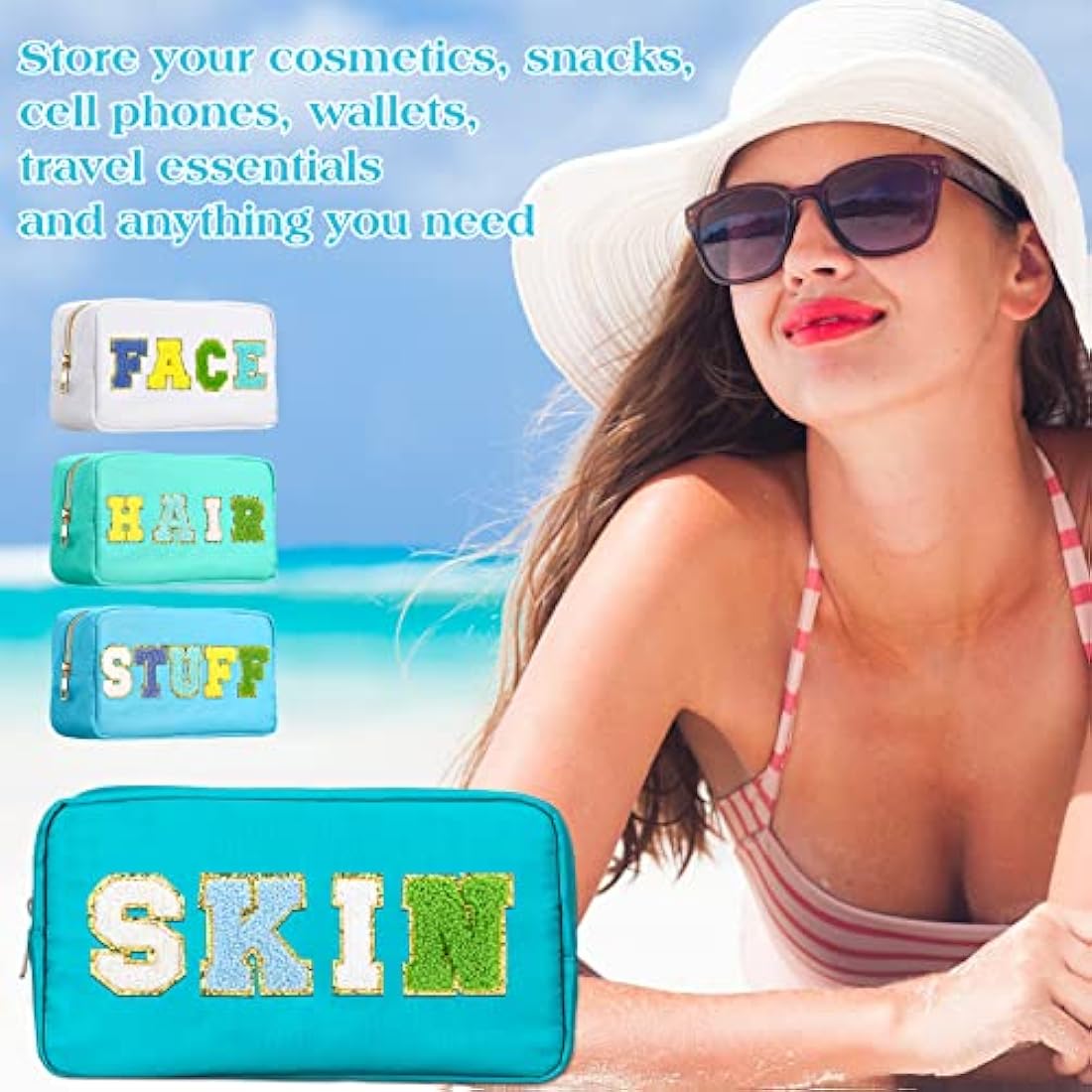 Reliable to Apply: preppy makeup organizer with chenille letter patch is mainly made of nylon material, which is waterproof to some extent, with sponge inside to better prevent your belongings from scratching; They are nylon pouch with zipper, easy to open and close smoothly, not easy to rust