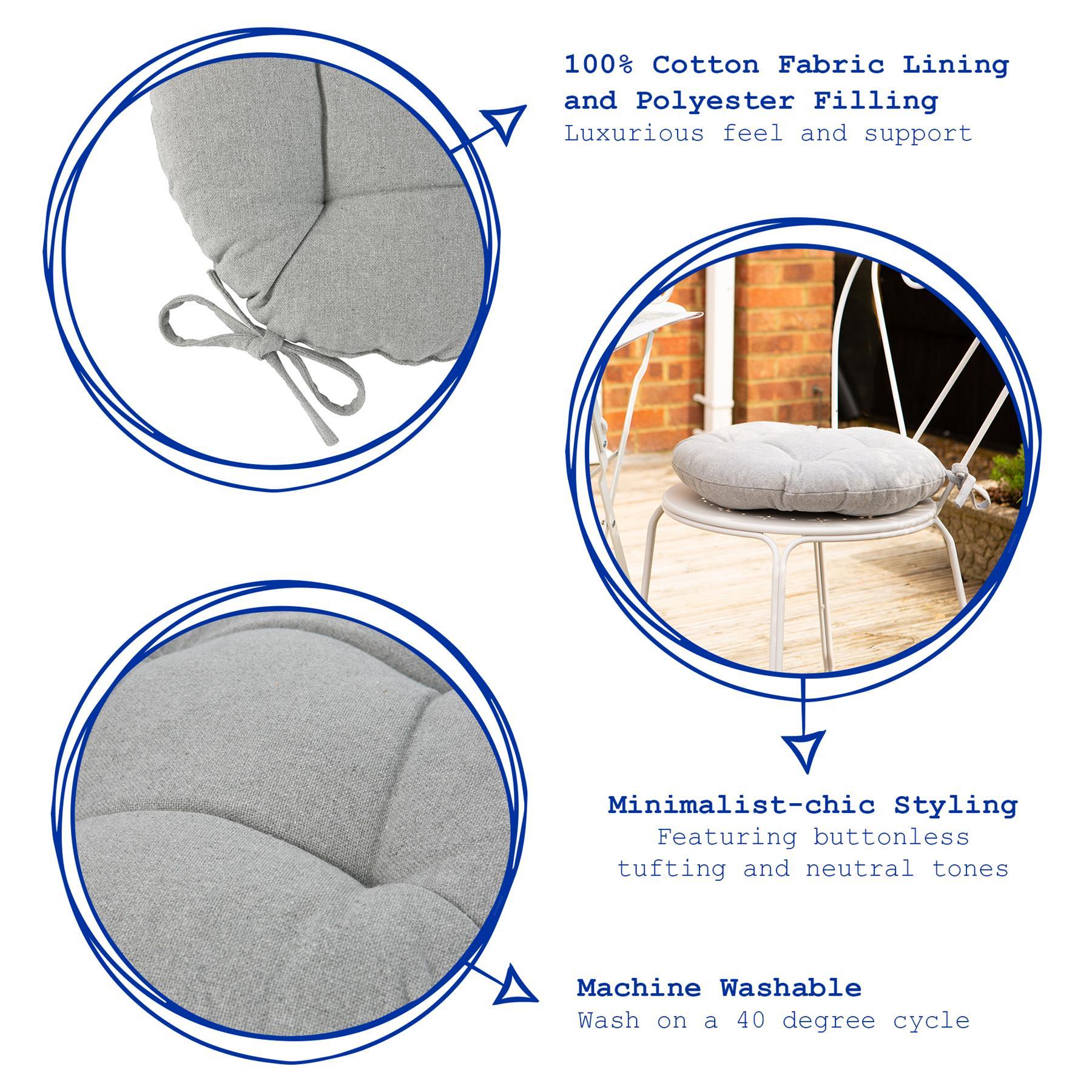 Designed with comfort and durability in mind, this soft round cushion is filled with polyester fibre, so you can be sure it will retain its shape and stand the test of time when enduring many a backside, whilst the lining is crafted from 100% premium cotton, meaning you don't need to worry about any spillages and stains that may occur!