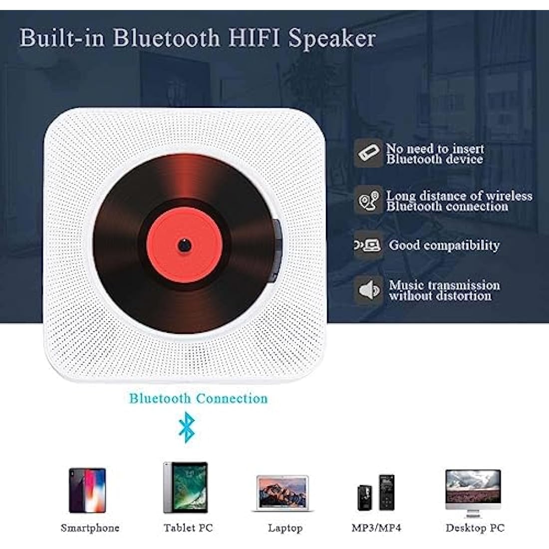 【Effortless Operation Anywhere】Simply insert a CD for instant auto-play recognition - no complicated setup required. Ideal for home entertainment, office ambiance, outdoor gatherings, or as a unique gift that combines retro charm with modern wireless convenience.
