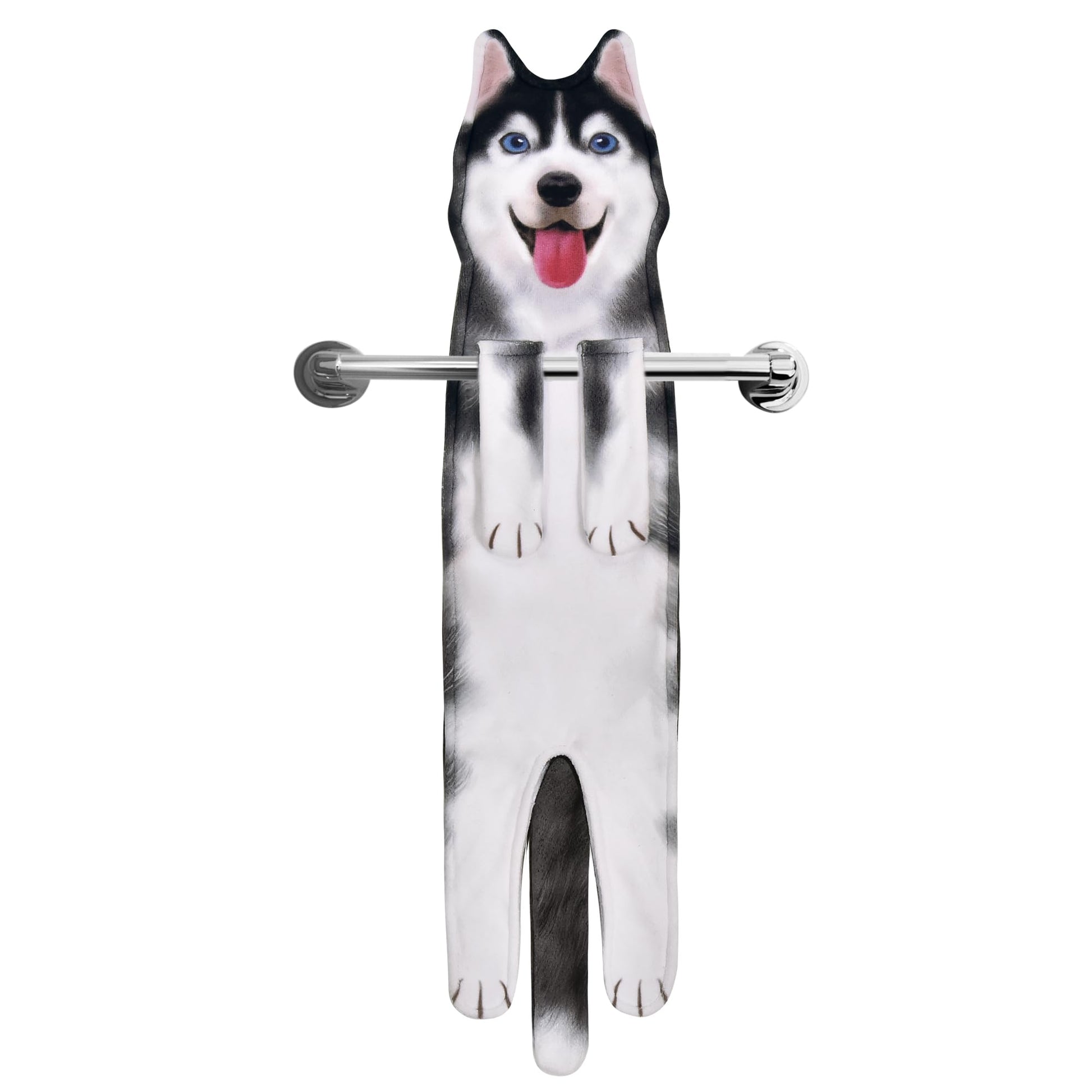 • Husky Hand Towel:Funny dog towels hanging on a towel rack,adorable dog paw snap button keep them from slipping off the towel rack.When you wipe your hands with the feeling of touching a dog's belly,you will be healed by the soft touch!The pattern on the back,tail and paws are very realistic,so cute that even the towels also make you want to hug them.