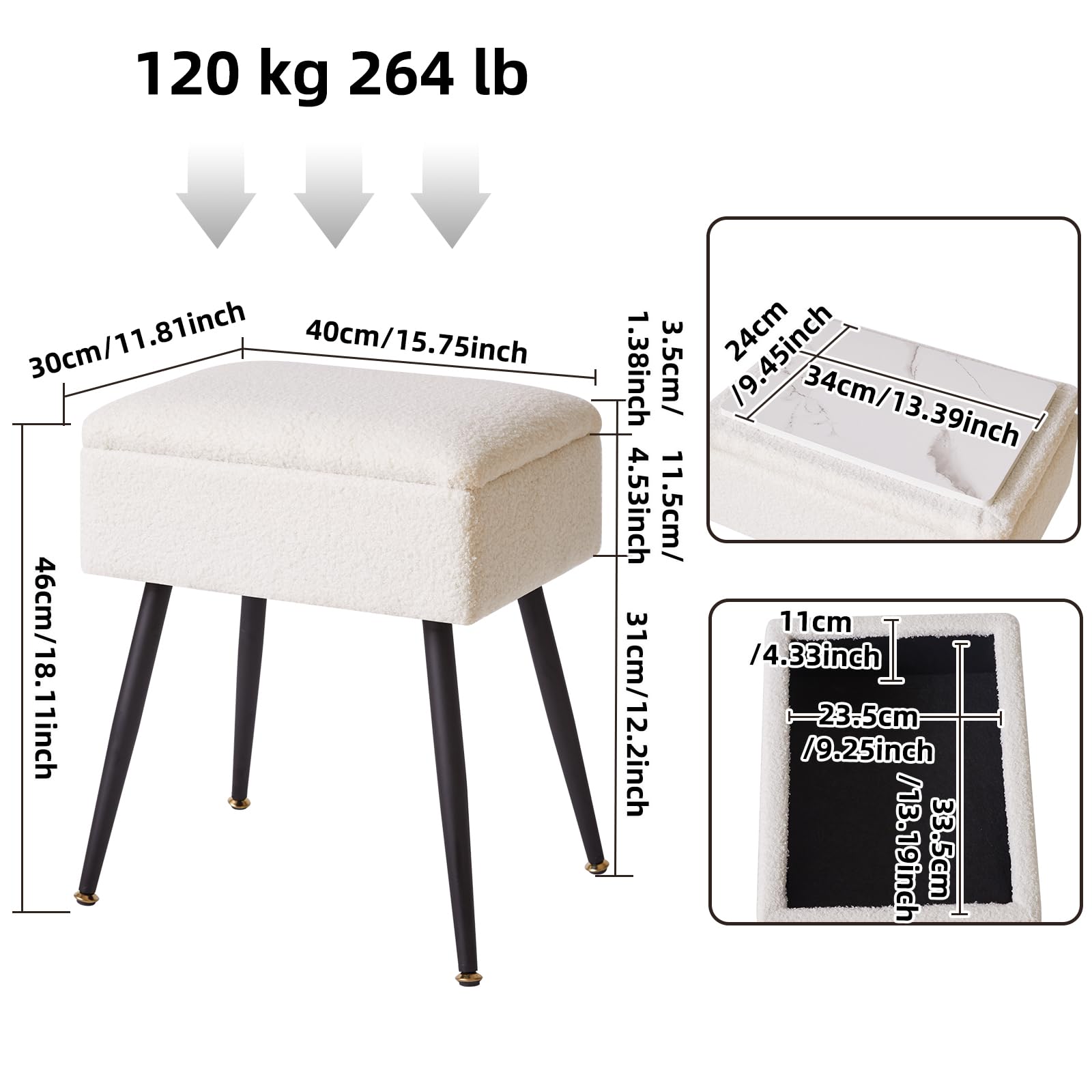 • 1.Soft and Comfortable: The surface of this vanity stool with storage is covered with soft and skin-friendly faux teddy fur material, with high-density, softer thick foam inside, providing you with enough comfort. Sit on it or put your feet on it so you can relax and enjoy your reading time, makeup time, or leisure time.