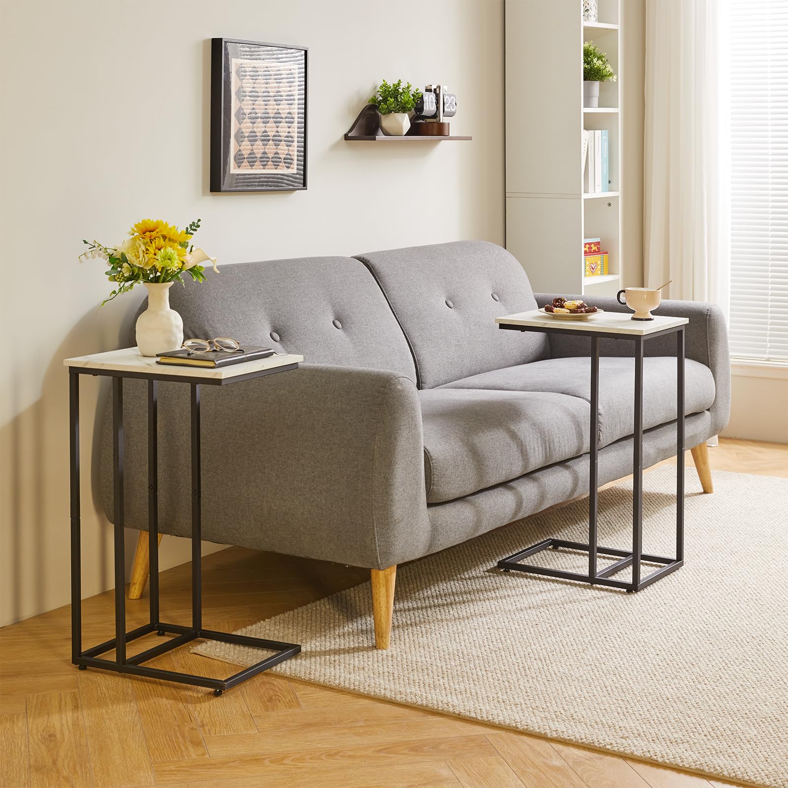 • 1. Practical C-shaped Design: The Aibiju side table adopts a C-shaped design, which can easily moved to any place. This end table can be used as a sofa side table or a bedside table, suitable for any place in the living room, bedroom, balcony, study, work, etc. The unique design is both aesthetically pleasing and space-saving