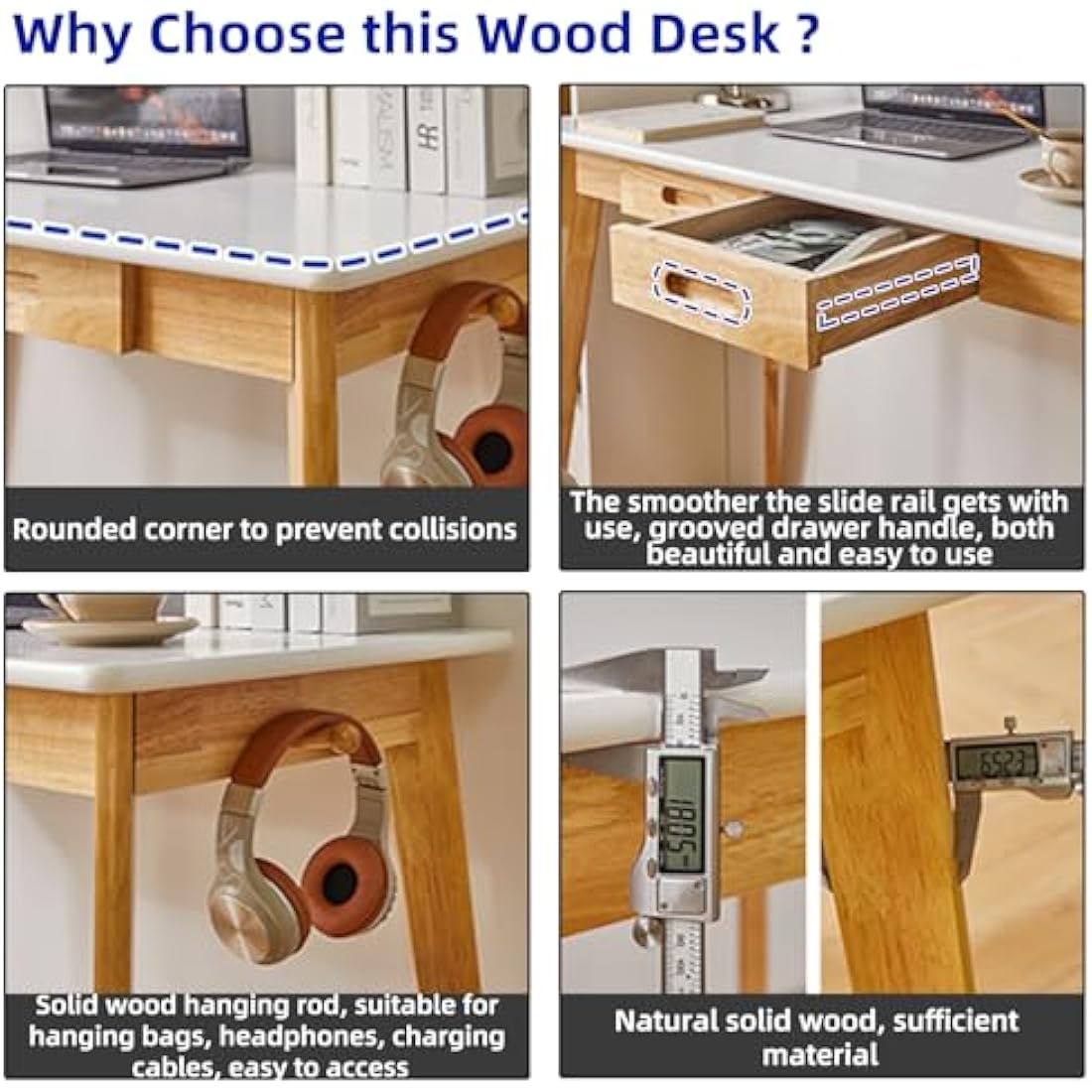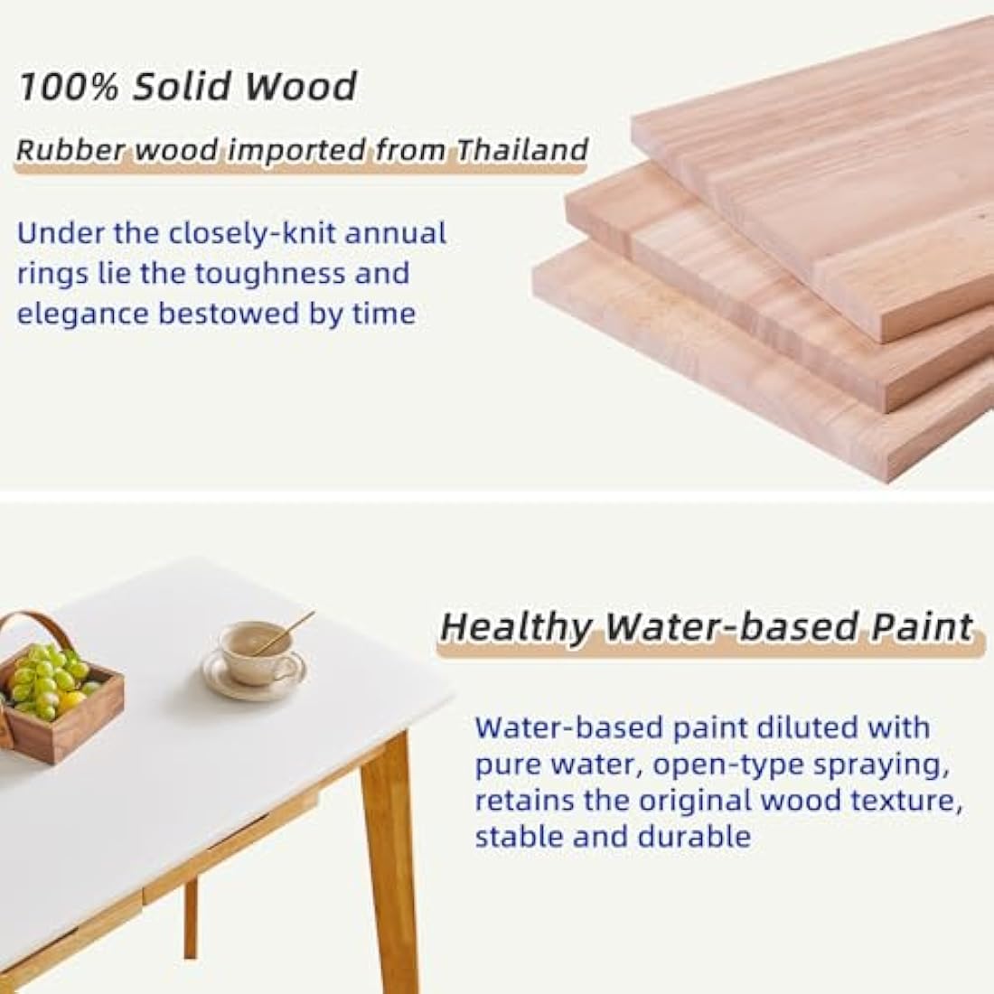 • 1.Solid Wood Material: This wood desk's tabletop and legs are made of high-quality natural rubberwood that is sturdy and durable, and can be used for years. The drawers are made of paulownia wood that is lightweight and practical. Used water-based paint, which is non-toxic and harmless