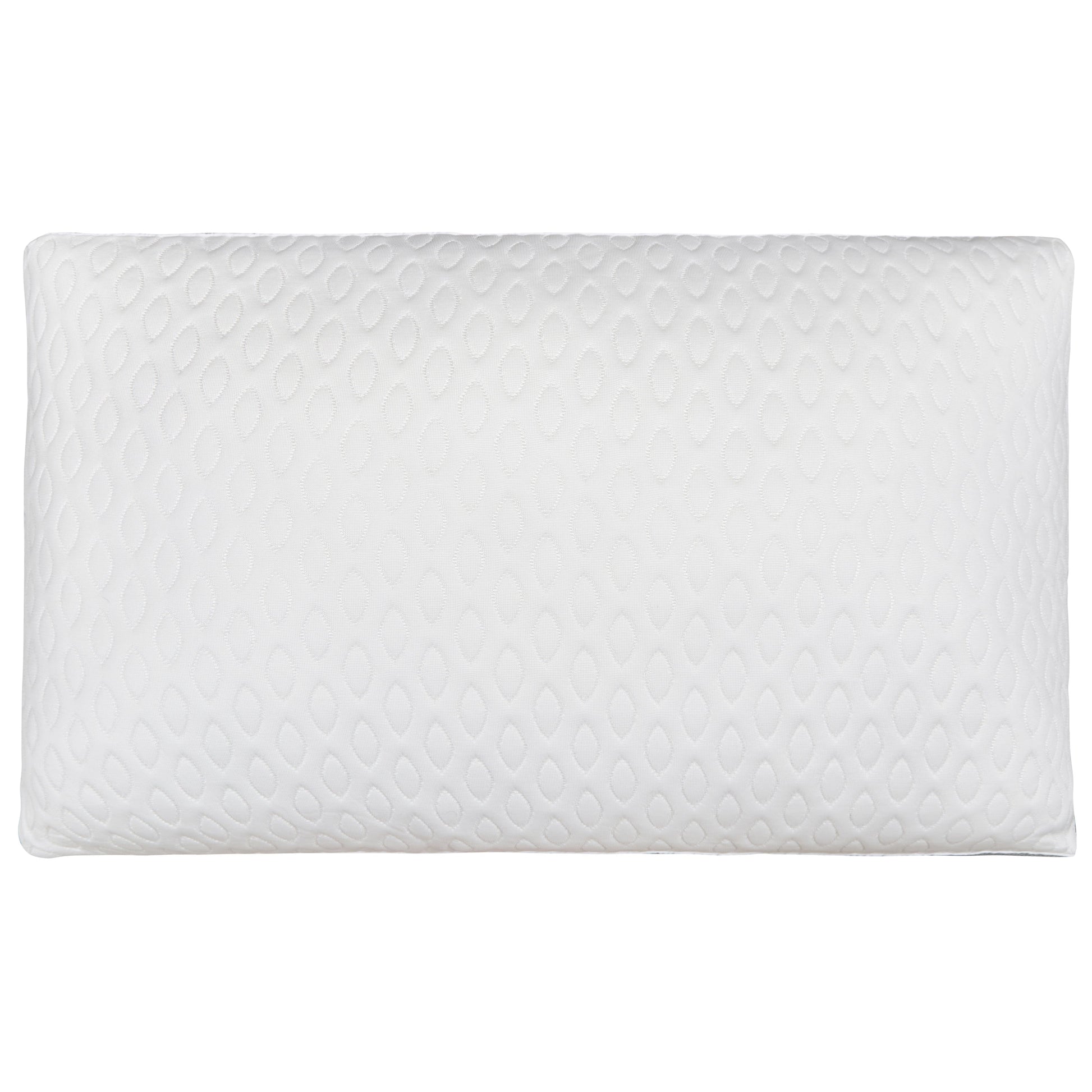 The Air Flow Pillow features a sophisticated white design with elegant piping along the edges, offering a clean and timeless aesthetic that complements any bedroom décor.