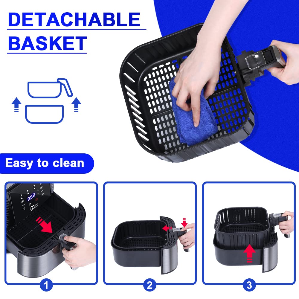• 【Easy Clean】: The fully detachable 5.5L non-stick fry basket allows for easy cleaning and is completely dishwasher safe! So, you can fry, grill, bake and roast healthy oil free food without worrying about the washing up!