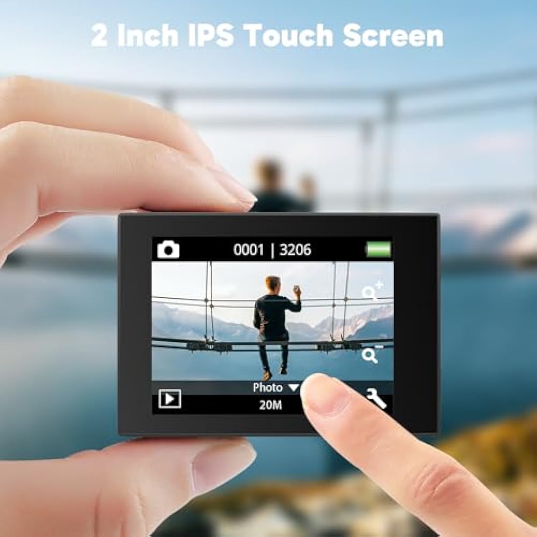 Intuitive UI Design: Ultra 2 inch IPS touch screen shows everything crystal clearly and brightly, easy to change settings, switch shooting modes, preview and playback footage.