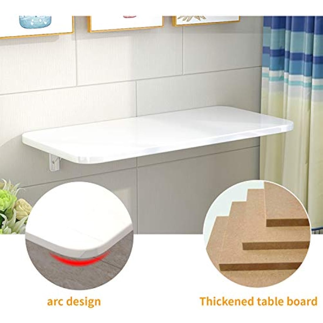 High Quality Desktop Thickened Table Board: The wall mounted table adopts a thick 1.8 cm table man-made board, E1 grade density board, non-toxic and tasteless, environmentally friendly, healthy, hard, odorless, not easy to damage, high temperature resistant, easy to clean, wear-resistant, with piano paint veneer, smooth and scratch resistant, comfortable to touch, clear texture, clean and beautiful