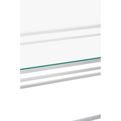 Its polished silver stainless-steel frame forms a clean, architectural outline, while the clear tempered glass top keeps the surface light and open, ideal for showcasing coffee-table books, floral arrangements, or your favourite tray without visually closing off the room.