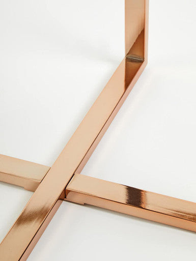 The faux marble provides a smooth, easy-care surface with a convincing stone look. The base brings a warm metallic colour with polished edges and tidy lines. Protective pads sit between the top and the frame, and glides help keep floors pristine.