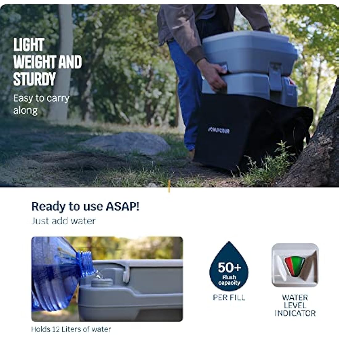 OUTDOOR GIFTING REDEFINED – Alpcour Portable Toilet, An ingenious gift for RV enthusiasts, campers, boaters, and adventurers – from sons to daughters, dads to grandmas. Make Christmas, Father's Day, or Mother's Day extra special for that brother, MIL, or even the family member who seemingly has everything.