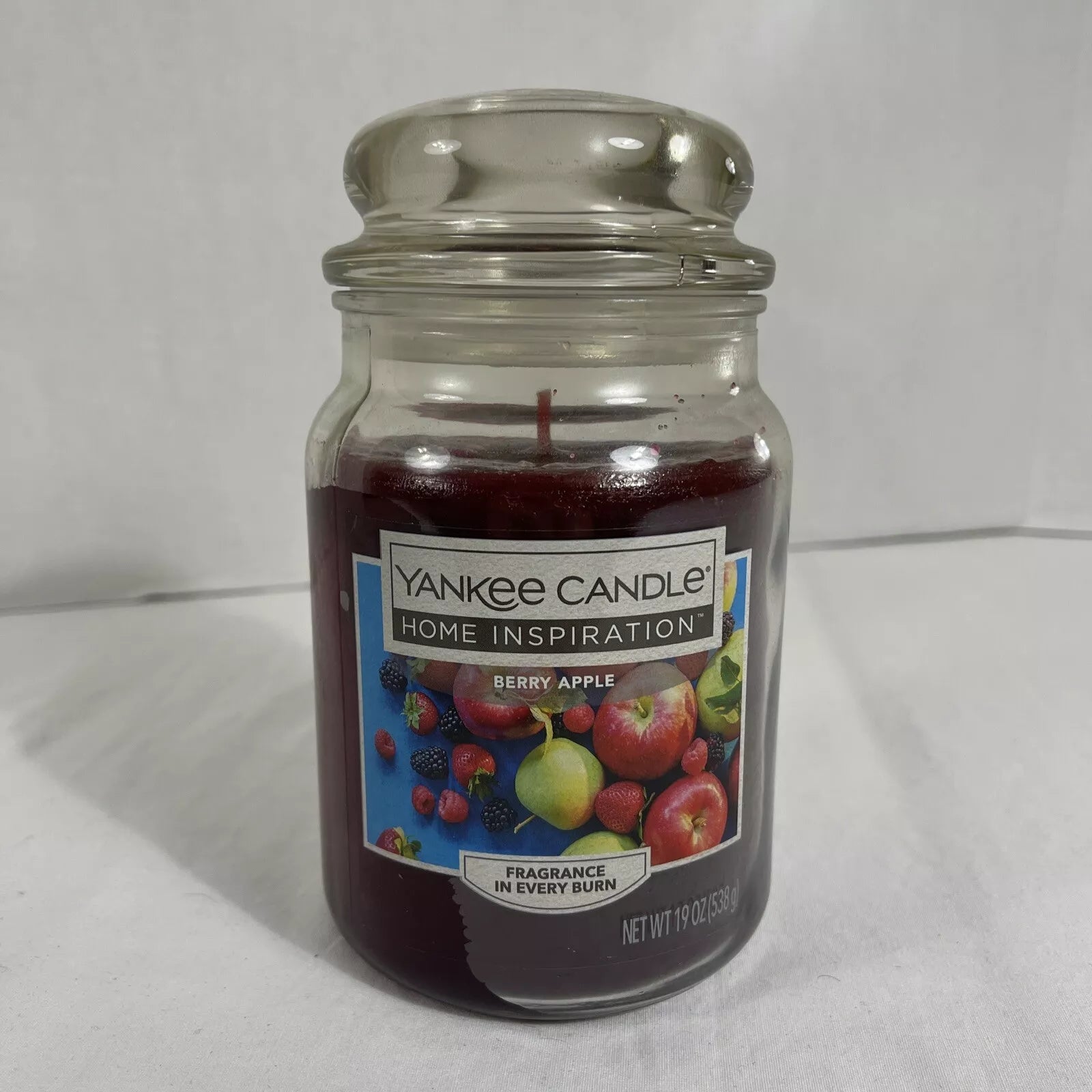 Add a touch of warmth to any room with this spiced apple scented candle from  Home  INSPIRATION  by Yankee Candle. The large 19 oz jar is perfect for the fall and autumn season. Made from paraffin wax, this traditional style candle features a round shape and a red color that will complement any home decor.