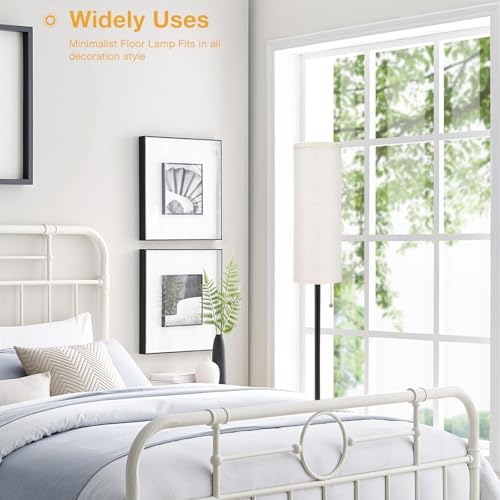 Standing Floor Lamp for Bedroom Living Room: Modern floor lamps are particularly suitable for use at home. The lampshade is made of linen and black iron lamp pole, makes it fits contemporary, retro, mid century, industrial style.(bulb included)