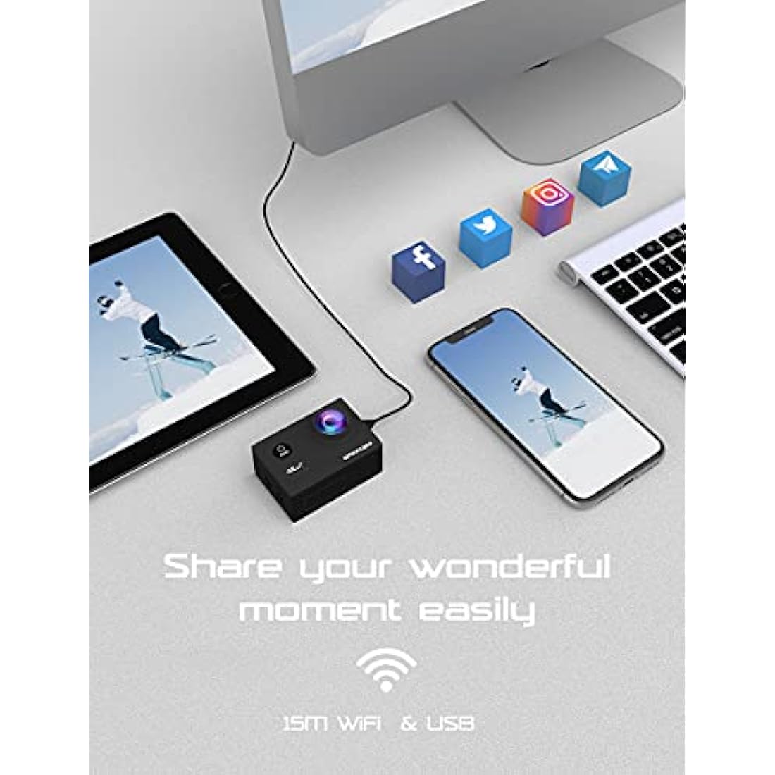 📷[Built-in wifi]: After connecting the APP (LIVE DV), the underwater camera can share the video on the social platform in a few minutes. The WIFI signal range can reach 10 meters. With the HDMI port, it can be connected to the TV .