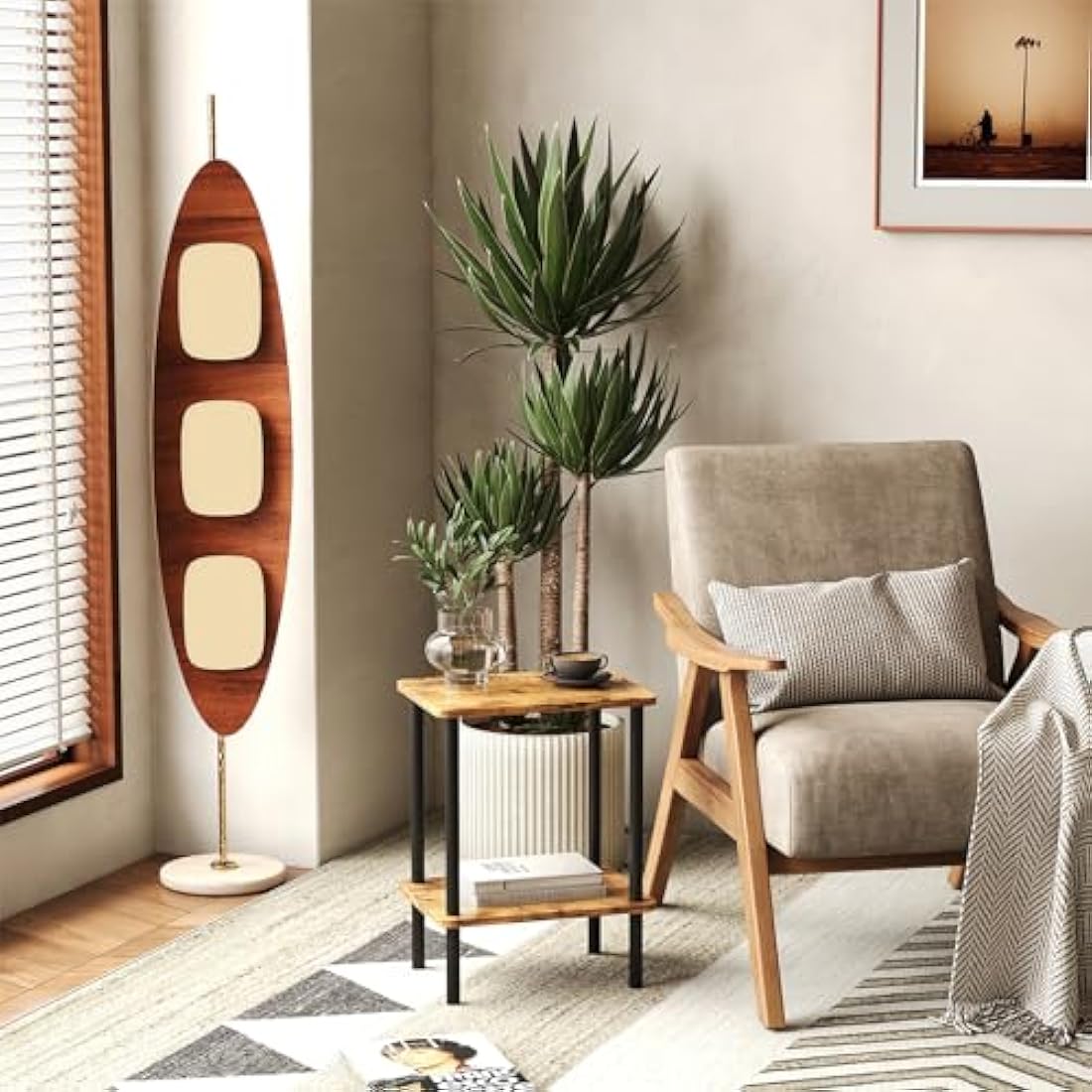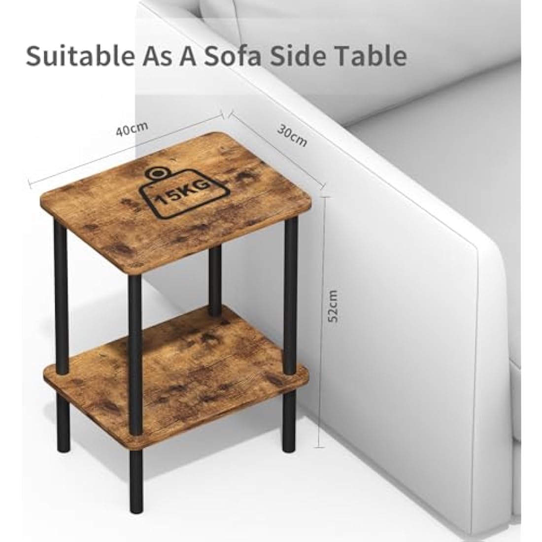 【Free Up Space】This end table is a space-saving wizard! The slim design of living room side table takes up minimal floor space while offering extra room to store your laptop, morning brew, phone, books, or a plant – all within easy reach. It's a perfect fit between sofas or snugly beside your bed, measuring 40 x 30 x 52 cm (L x W x H).