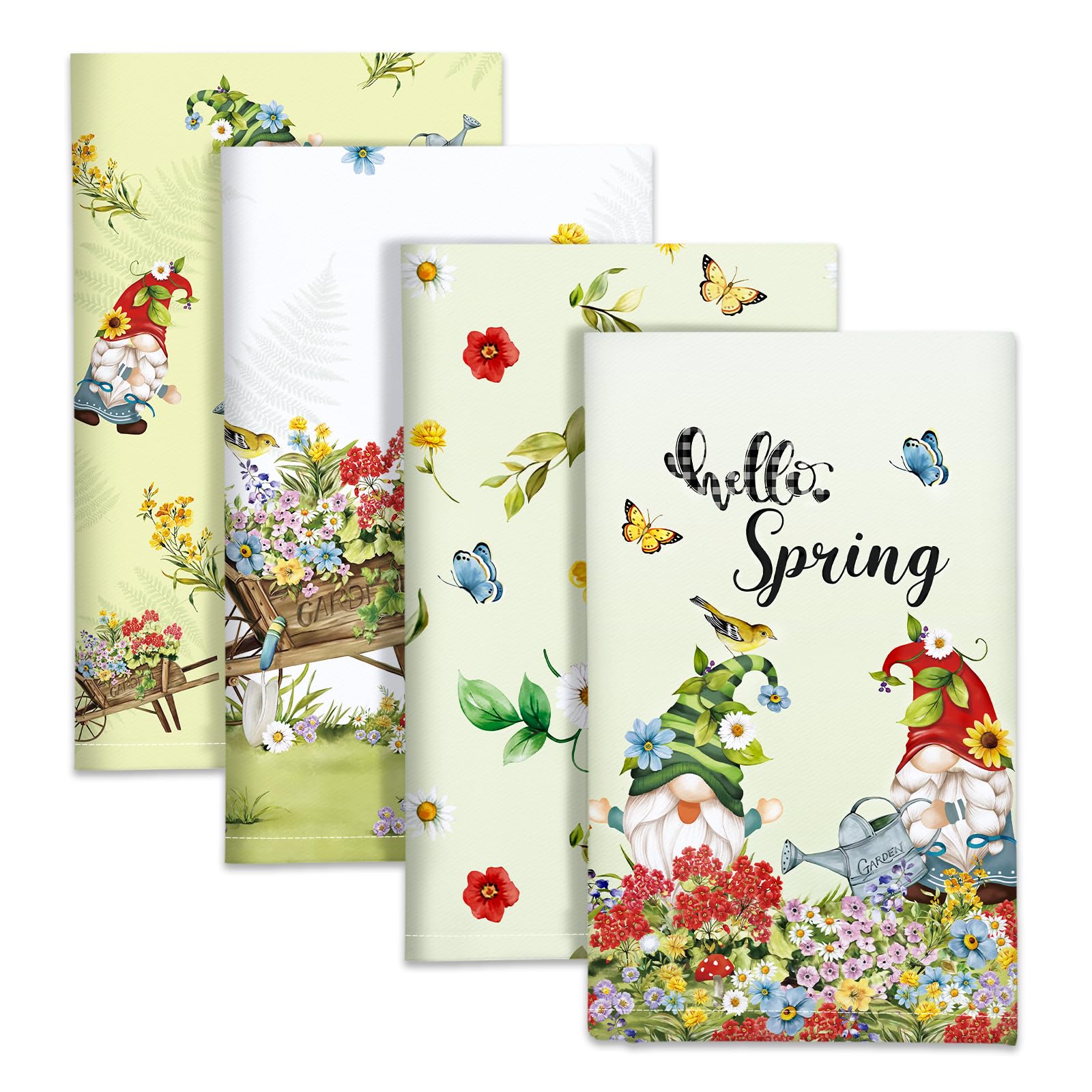 Arquiel Gnomes Kitchen Towel 100% Cotton Quick Dry Dish Towels 50 x 70CM, Dishcloth Hand Towels for Housewarming Gifts Dining, Home, Wedding, Banquet, Buffet (Set of 4)