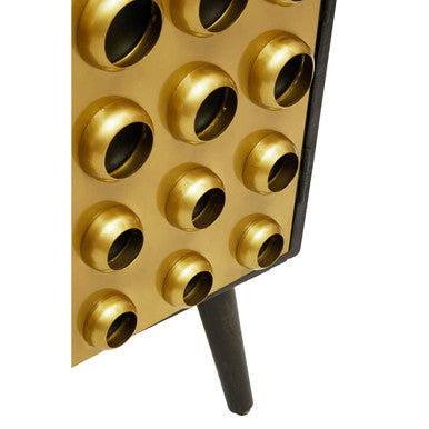 Bring home the Arti Mango Wood Two Door Sideboard from Orsina and enjoy a refined balance of display space and concealed storage. Inspired by classic mid-century lines, this low and generous Mango Wood Two Door Sideboard showcases a field of gold-toned circular details across its doors. The Arti Sideboard becomes a conversation piece while keeping dinnerware, tech accessories, or family games neatly gathered.