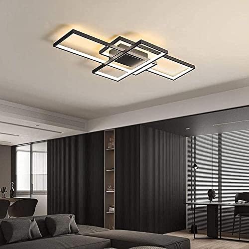 ASDMD LED Ceiling Light, 50W Modern Dimmable Ceiling Lighting, Square Ceiling Lamp with Remote Control for Living Room Dining Room Bedroom, 2700-6500K Close to Ceiling Light Fixture (Black, 90CM)