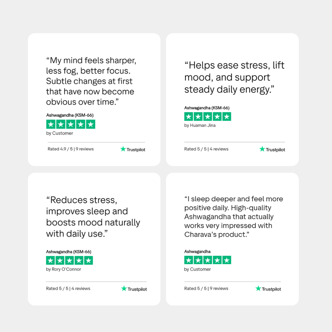 CHARAVA'S KSM-66 ASHWAGANDHA is standardised to the highest purity and backed by clinical research for consistent results. It is also: