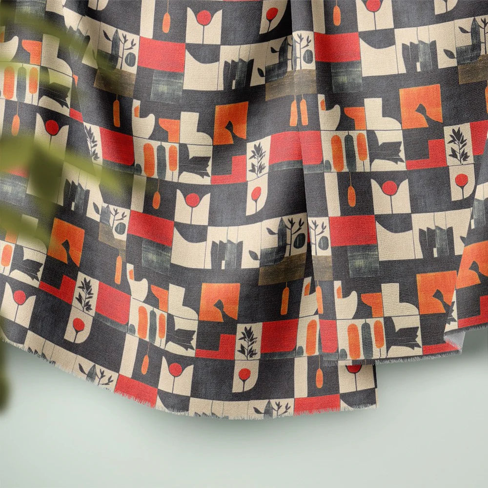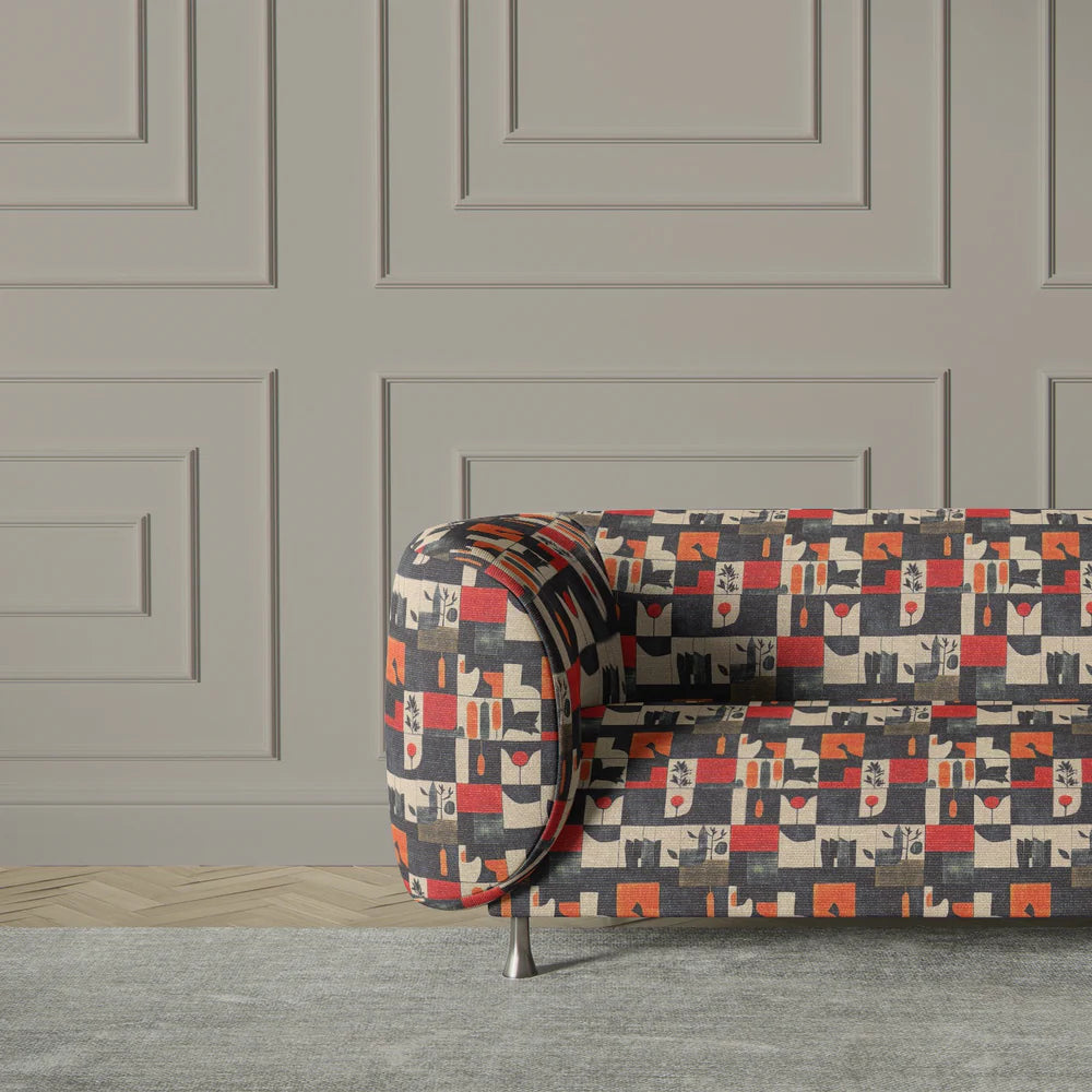 Atelier No.10 Upholstery Fabric is a celebration of artistic harmony, where geometry and nature blend effortlessly in a striking mid-century style textile. Evoking the character of a working artist’s studio, this design balances structured abstraction with soft, organic imagery — think tulip buds, painterly brushstrokes and architectural silhouettes.