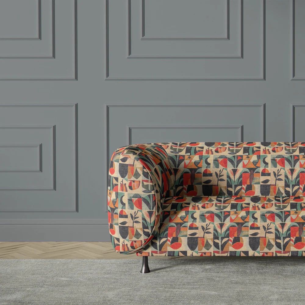 Atelier No.3 Upholstery Fabric is a celebration of artistic craftsmanship, blending structured geometric shapes with organic botanical influences. This cubist-inspired textile, featuring earthy terracotta, soft sage green, deep charcoal, and warm ivory tones, brings a sense of balance and movement to any interior. The meticulously arranged tiled composition is reminiscent of mid-century design, making it an exceptional choice for statement upholstery pieces.