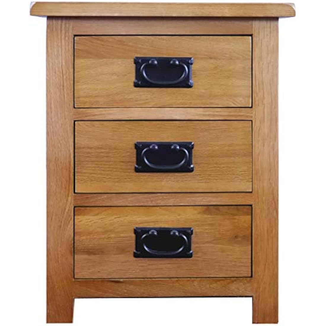 Aurotrice OAK Bedside Table 3 Drawers, NC Paint Cabinet, OAK MDF Board & Hardwood W:42 D:32 H:56 CM