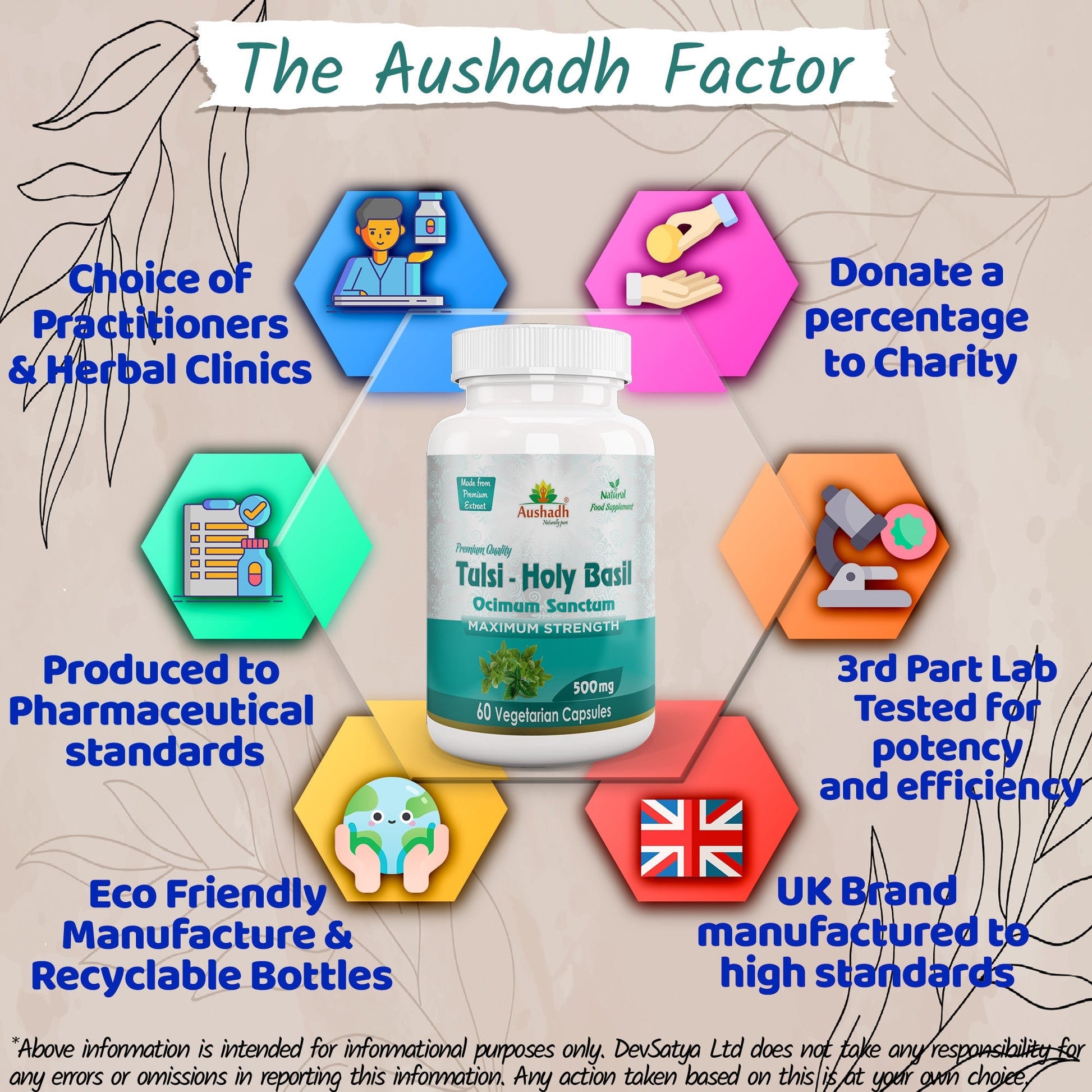 Aushadh Holy Basil Capsules (Tulsi) Stress Balance & Immune Wellness Support - Vegan, Gluten Free, Non-GMO, 60 Capsules