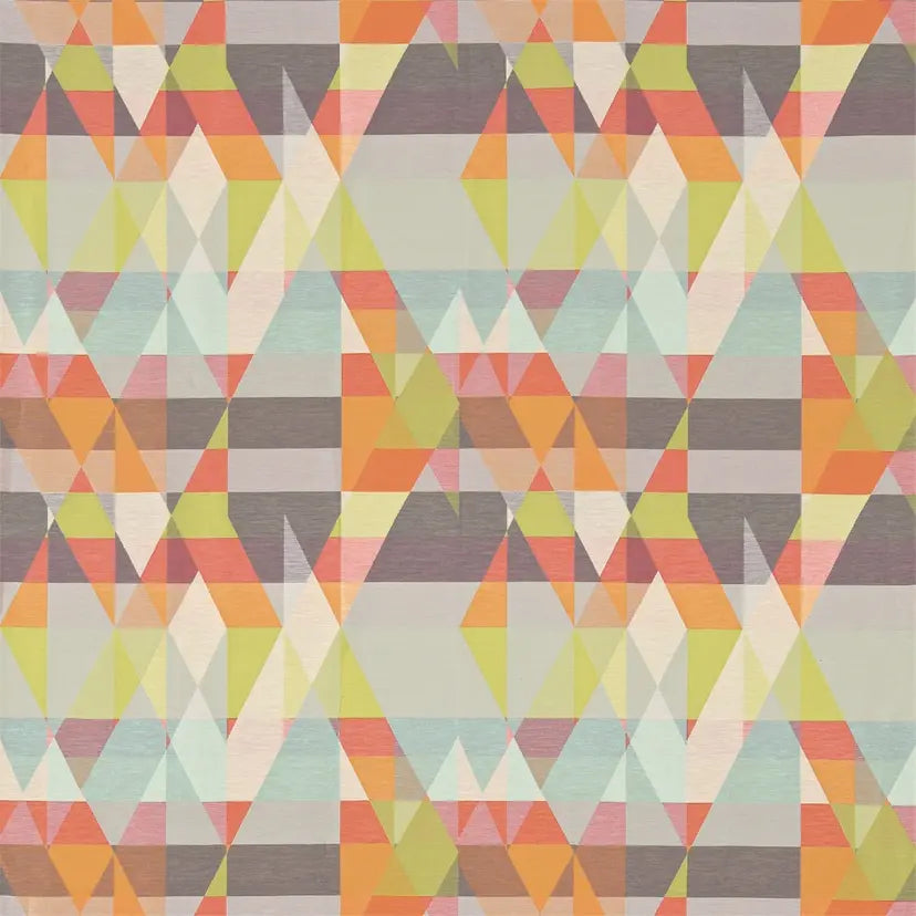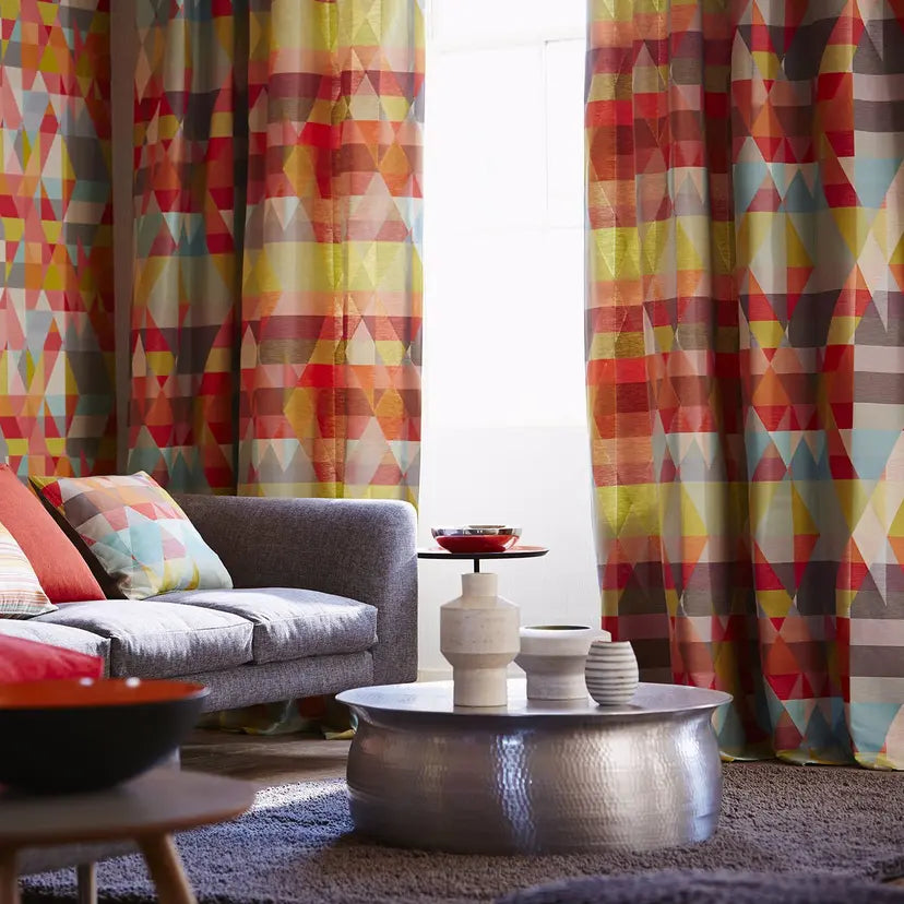 A glorious kaleidoscopic mix of geometric shapes and colour clash colourways come together to create a geometric fabric design with a difference. Create interest in living rooms, bedrooms and hallways with this snazzy design.
