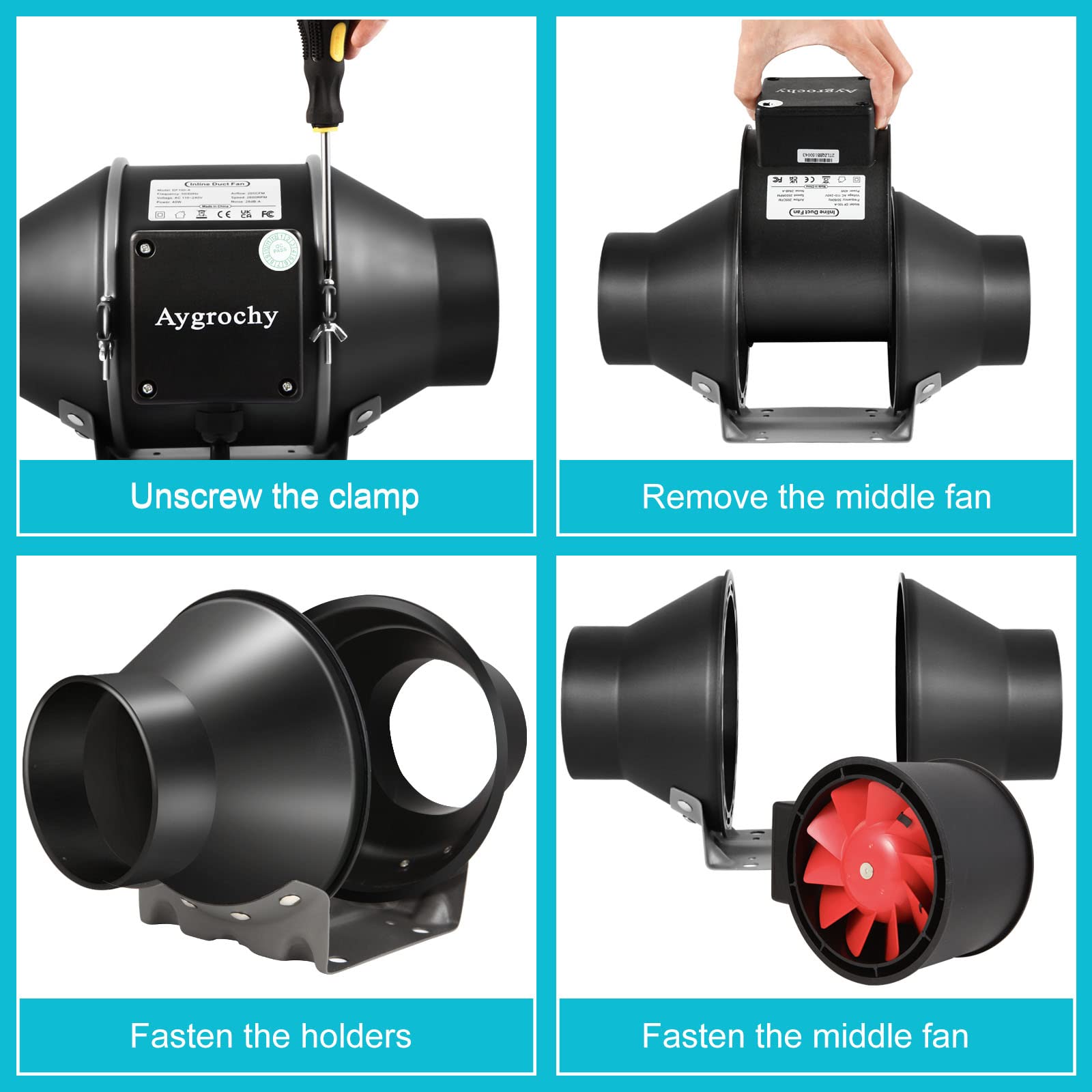 Aygrochy 6 inch Quiet Inline Duct Fan with Variable Speed Controller - Ventilation Exhaust Fan Using for Heating Cooling Booster, Grow Tents,