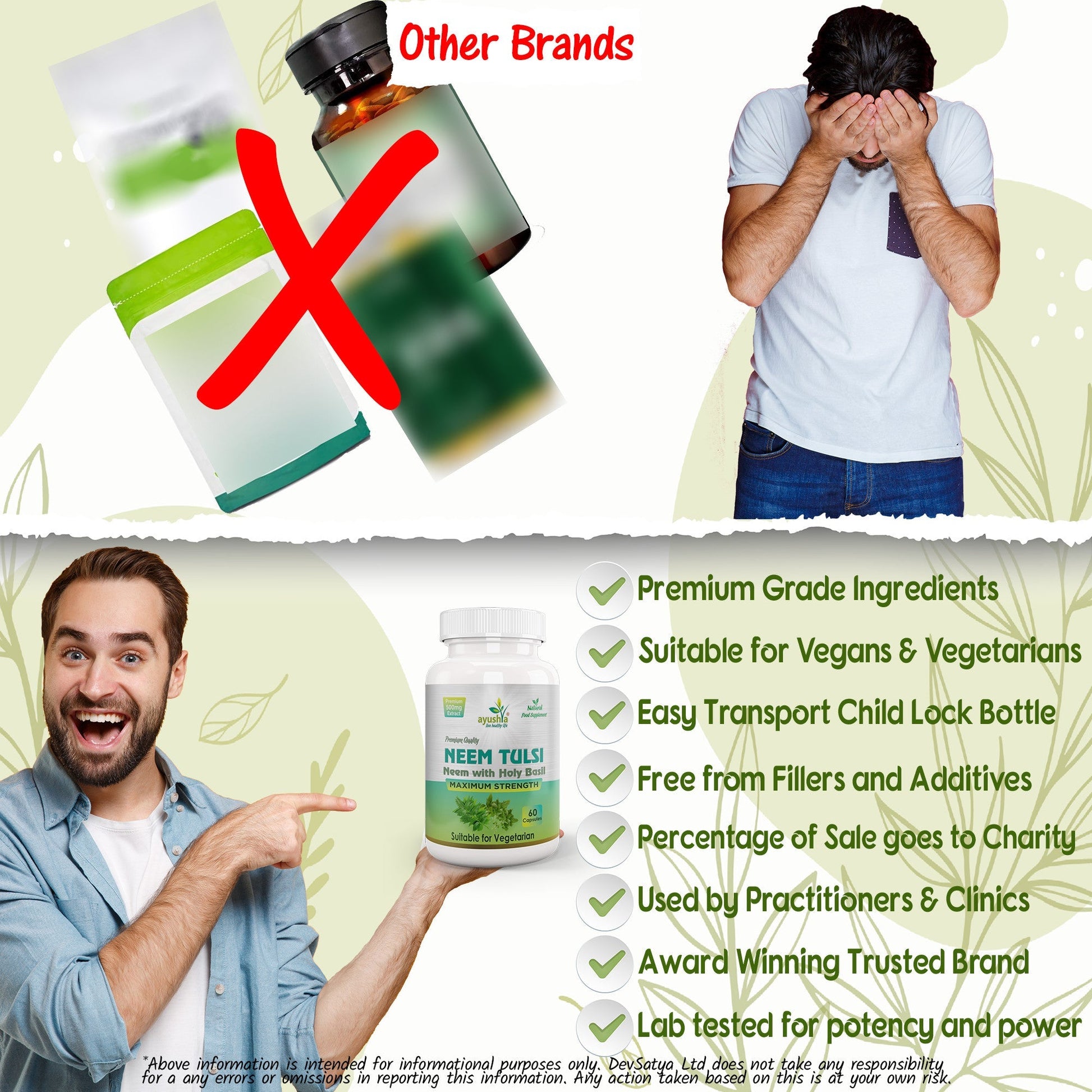 Ayushya Neem Tulsi Capsules Skin Clarity & Immune Wellness Support - Vegan, Gluten Free, Non-GMO, 60 Capsules