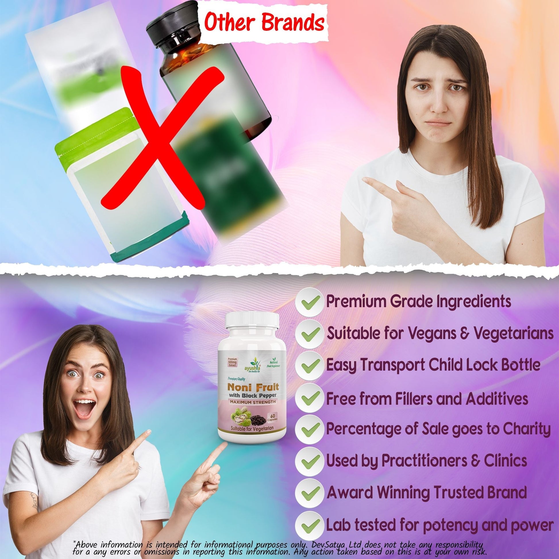 Ayushya Noni with Black Pepper Capsules (Indian Mulberry) Immune Wellness & Antioxidant Support - Vegan, Gluten Free, Non-GMO, 60 Capsules