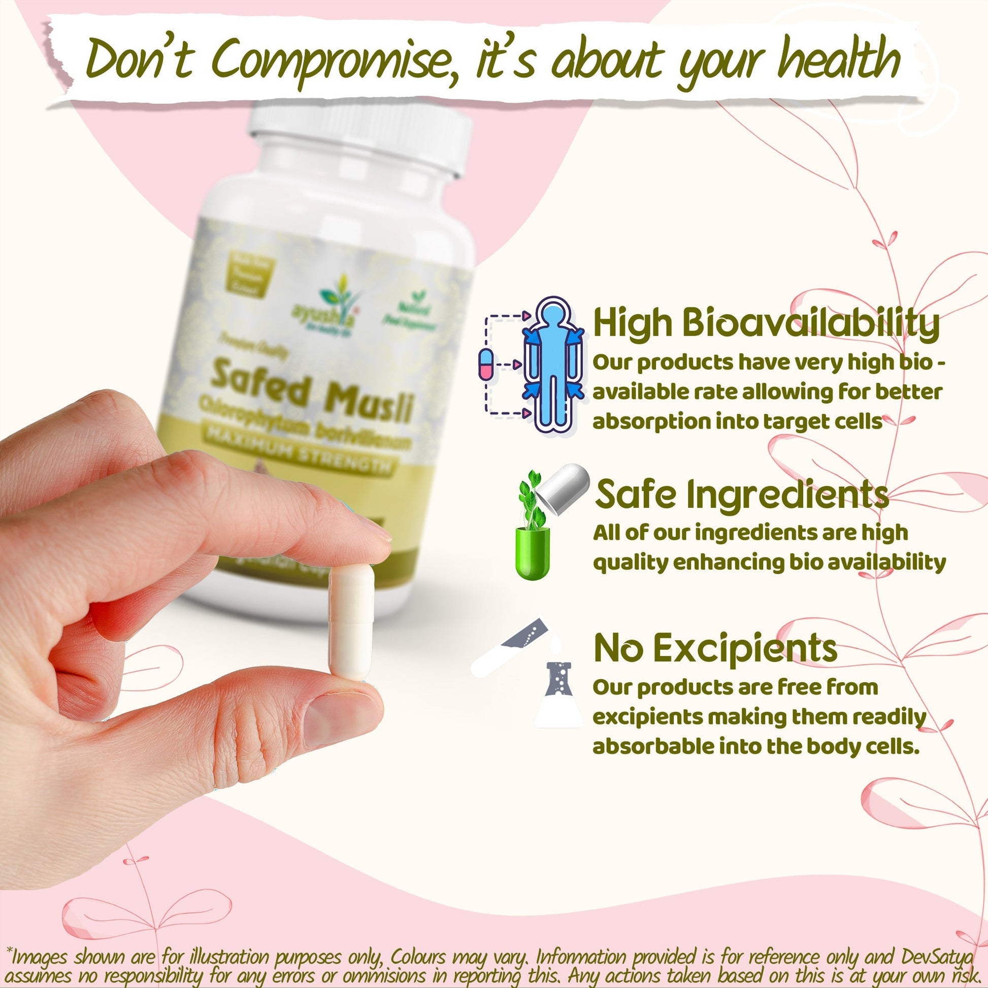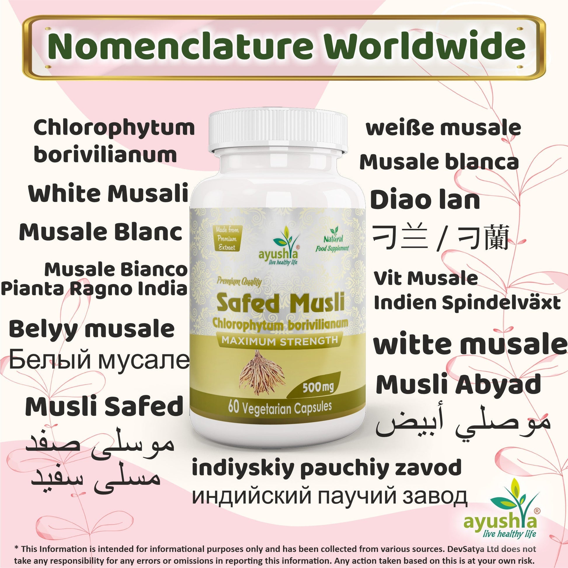 Ayushya Safed Musli Capsules (Chlorophytum Borivilianum) Strength & Stamina Support - Vegan, Gluten Free, Non-GMO, 60 Capsules