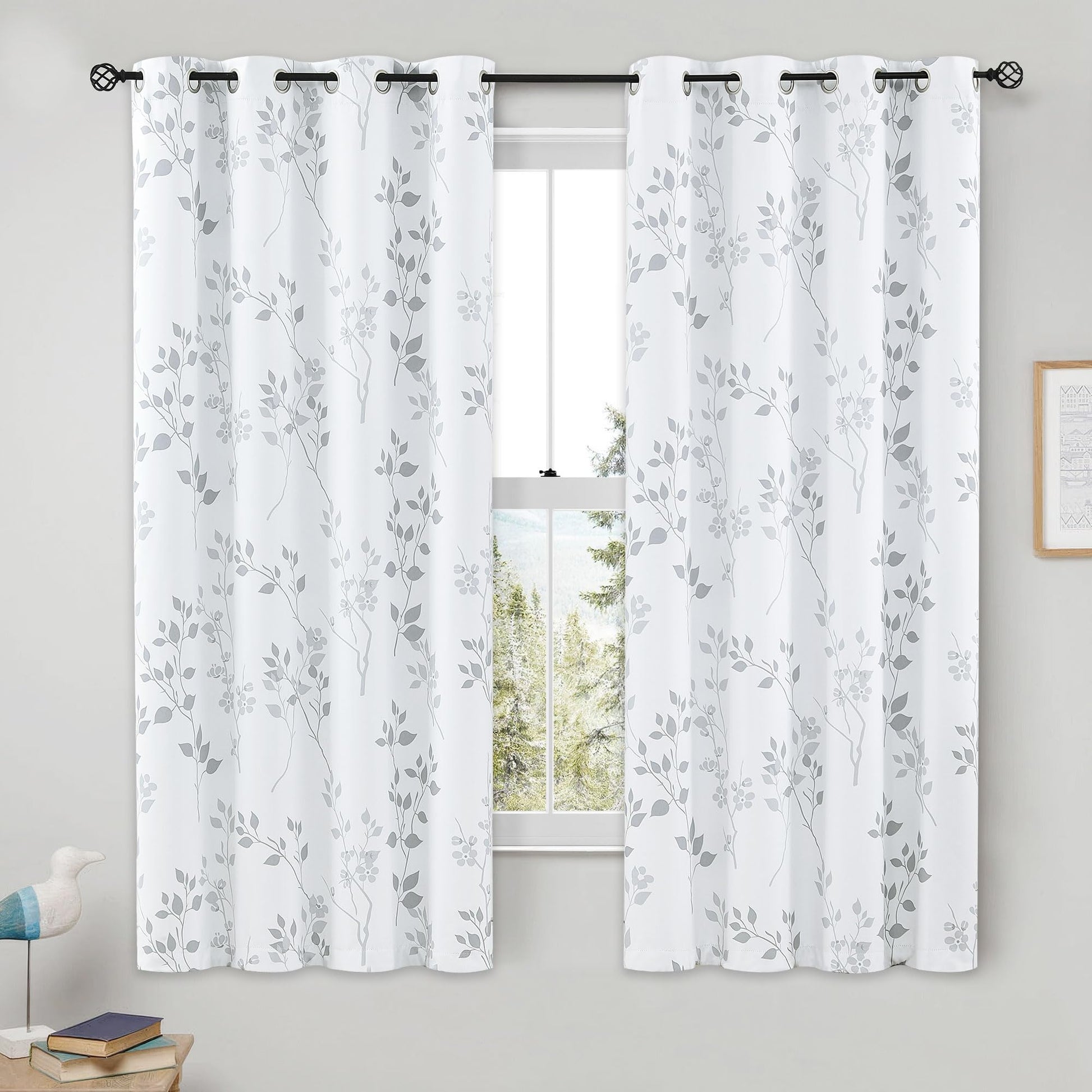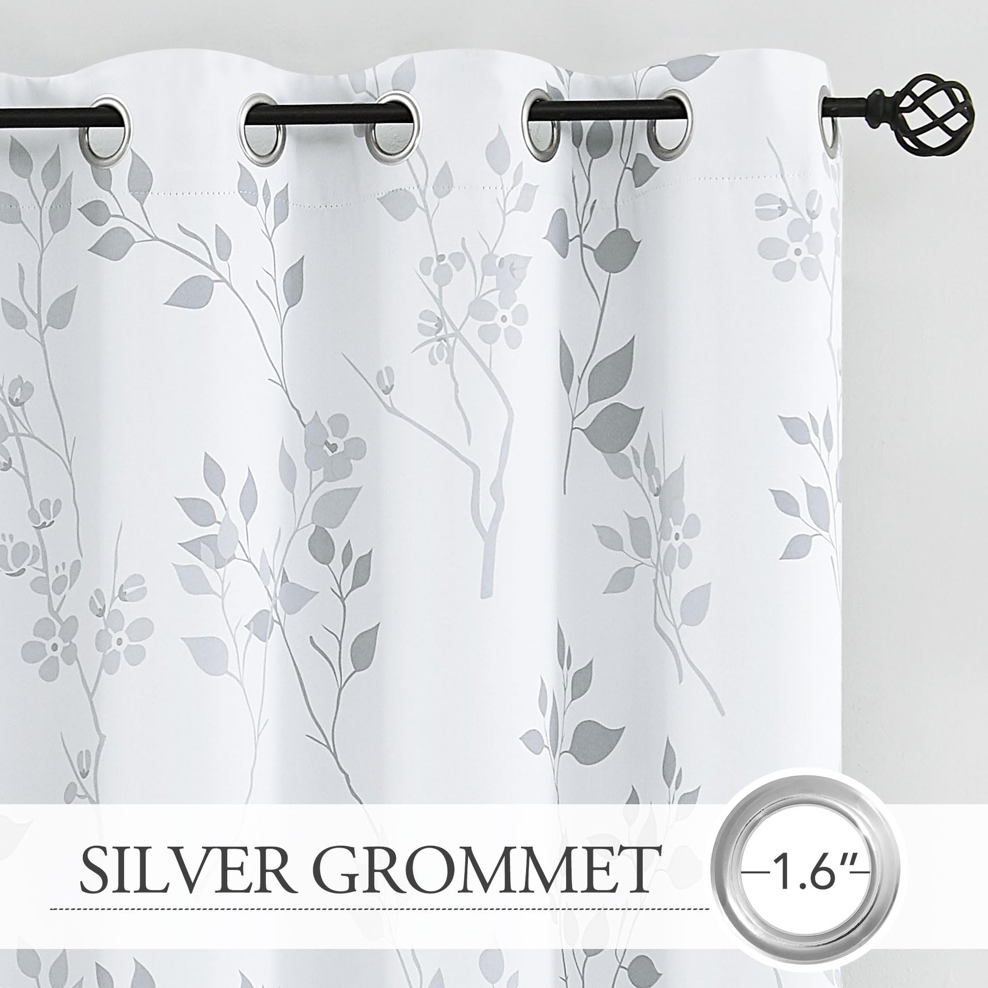 Beauoop Grey Floral Blackout Curtains for Bedroom Living Room 54 Inch Drop Leaf Print Eyelet Curtain Botanical Thermal Insulated Noise Reducing Drapes Window Treatment Sets 2 Panels