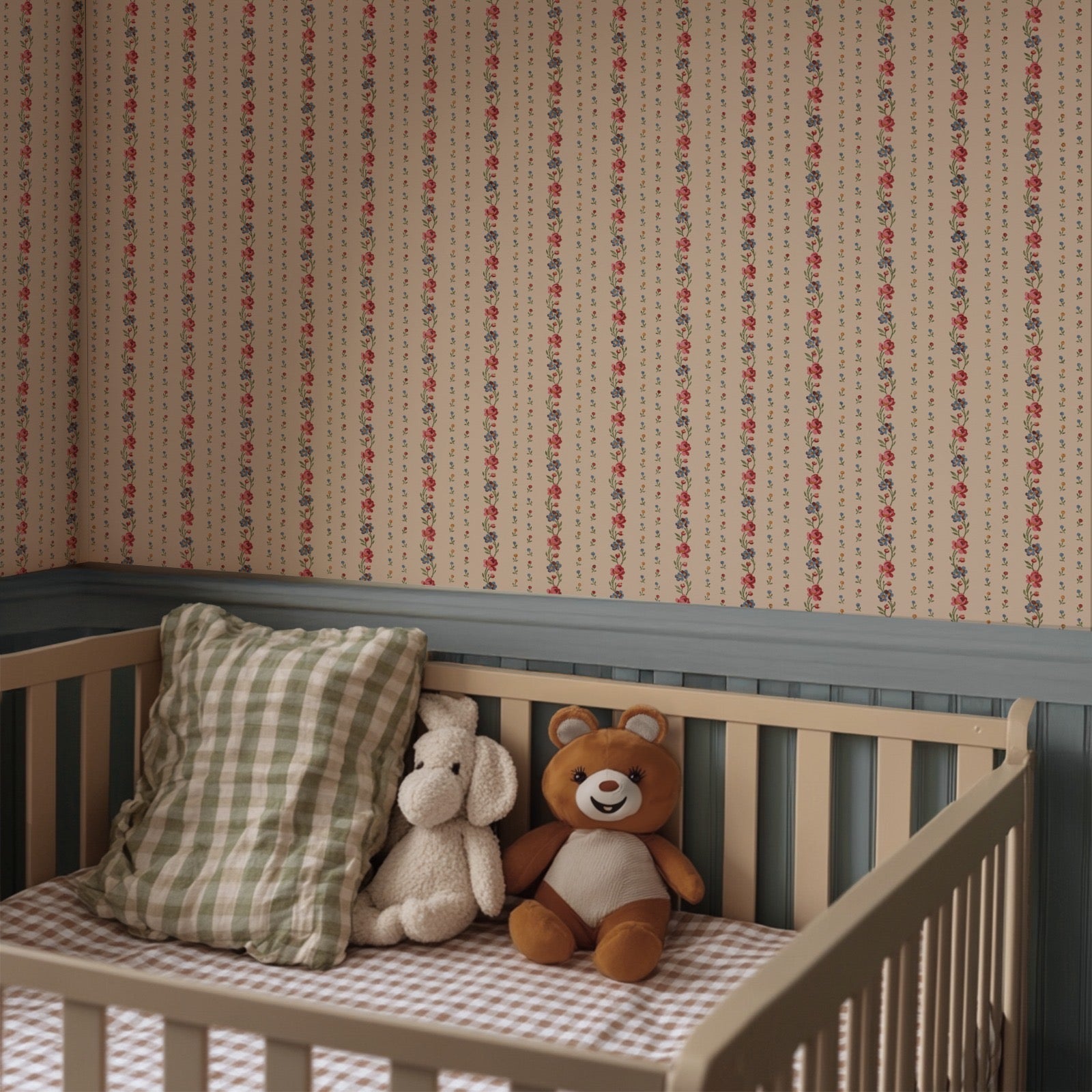 Belle Buds is a faithful reproduction of a mid-19th century French wallpaper design, likely originating around the 1850s during the height of the Romantic period in European decorative arts. This era favored naturalistic motifs, delicate florals, and refined symmetry—qualities beautifully captured in this design.
