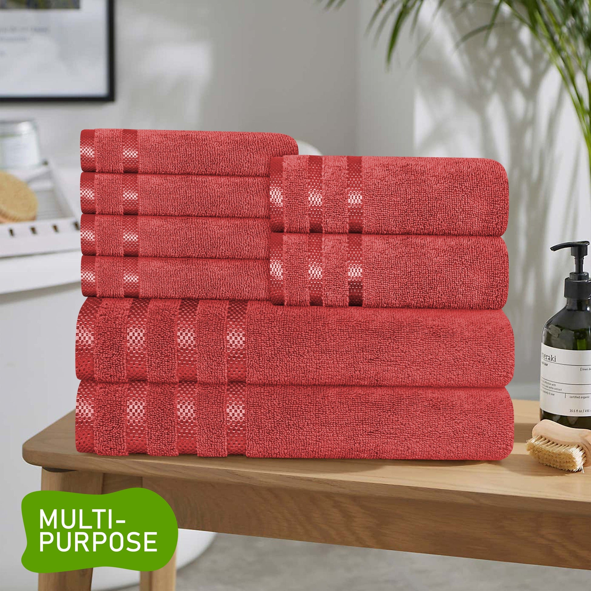 Description: The Belmont Viscose Stripe Red Towels are crafted from high-quality cotton, renowned for its ability to absorb moisture efficiently and dry quickly. The plush texture feels luxuriously soft, providing comfort with every use. These towels retain their fluffiness even after multiple washes, ensuring long-lasting freshness.