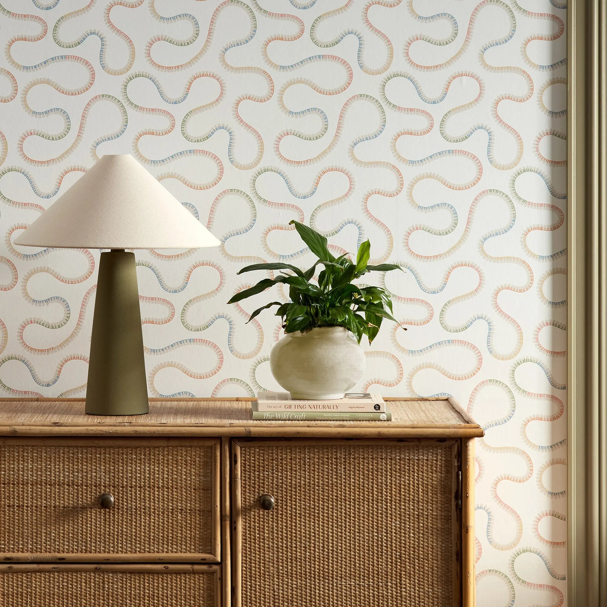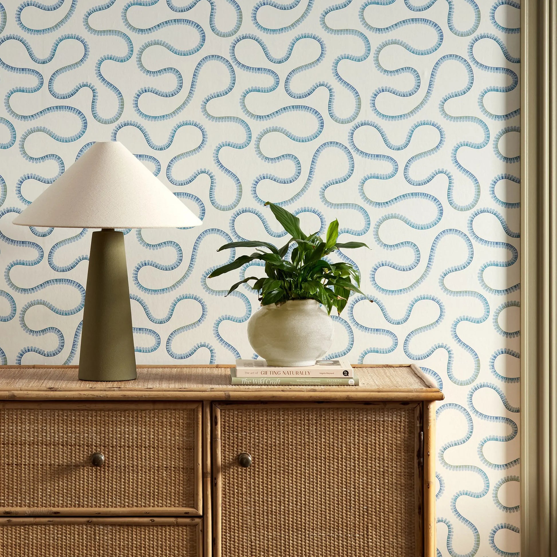 Take an imaginative stroll along this meandering path design, inspired by an embroidery of the same name in the collection and translated into a relaxing wallpaper print. Bimble is a modern multidirectional design conjuring memories of journeys on foot and ambles along the river.